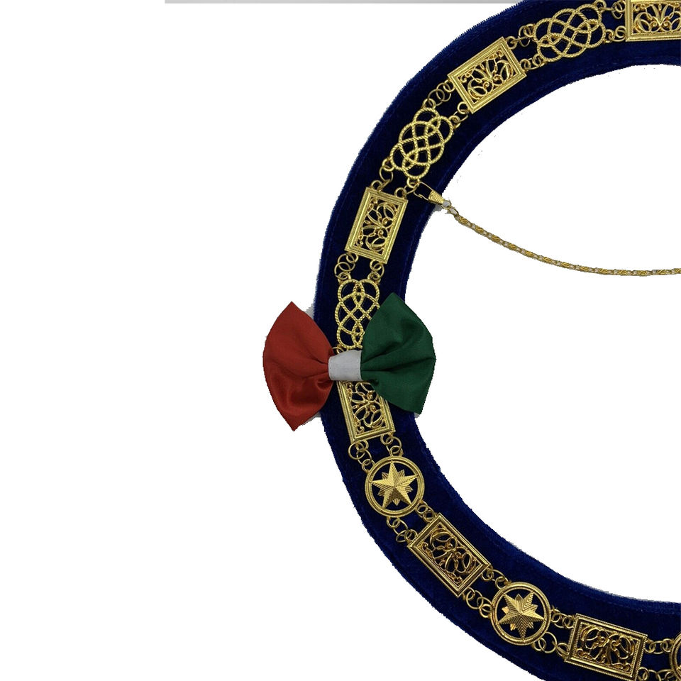 Collar de Emulación Rito Anatólico Inglés con Turquesa Moiré y Bordado Artesanal, Regalia Masónica, Collar de Oficial del Arco Real