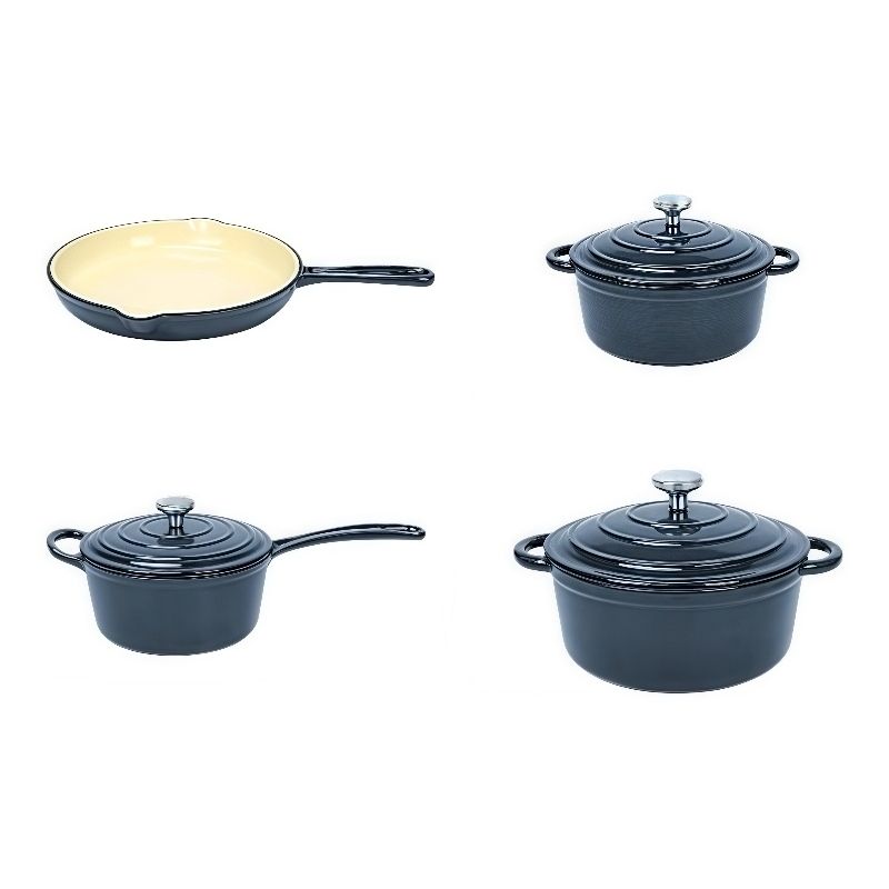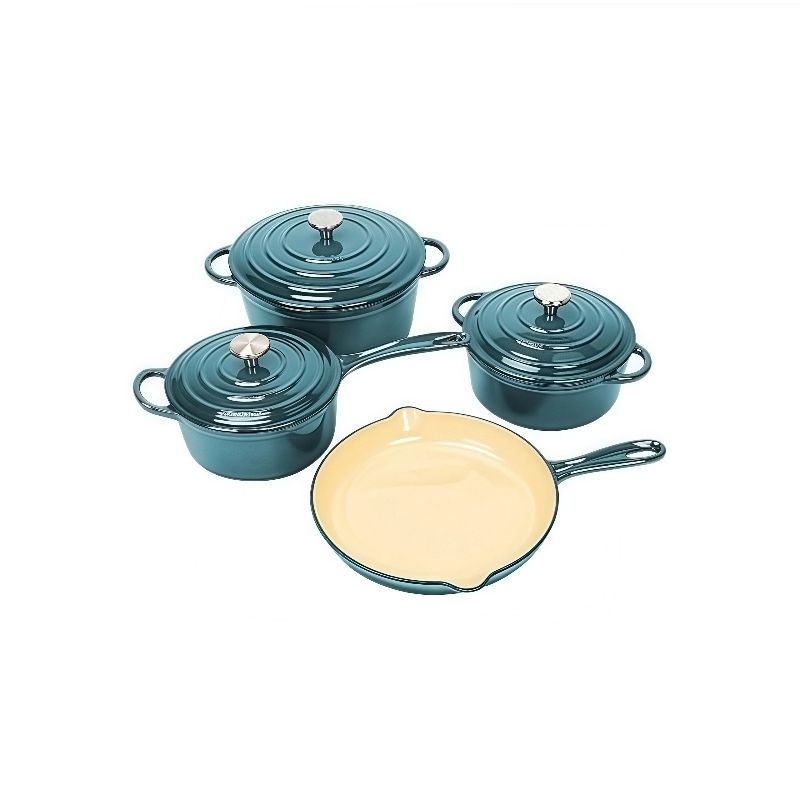 Juego de utensilios de cocina de hierro fundido esmaltado-7 piezas que incluyen Horno Holandés, sartén, cacerola, olla para salsa, 3 tapas