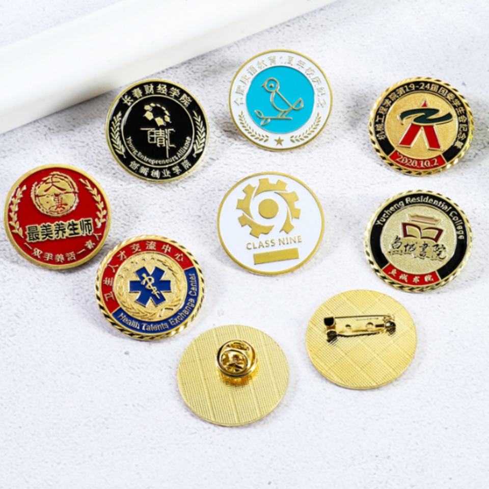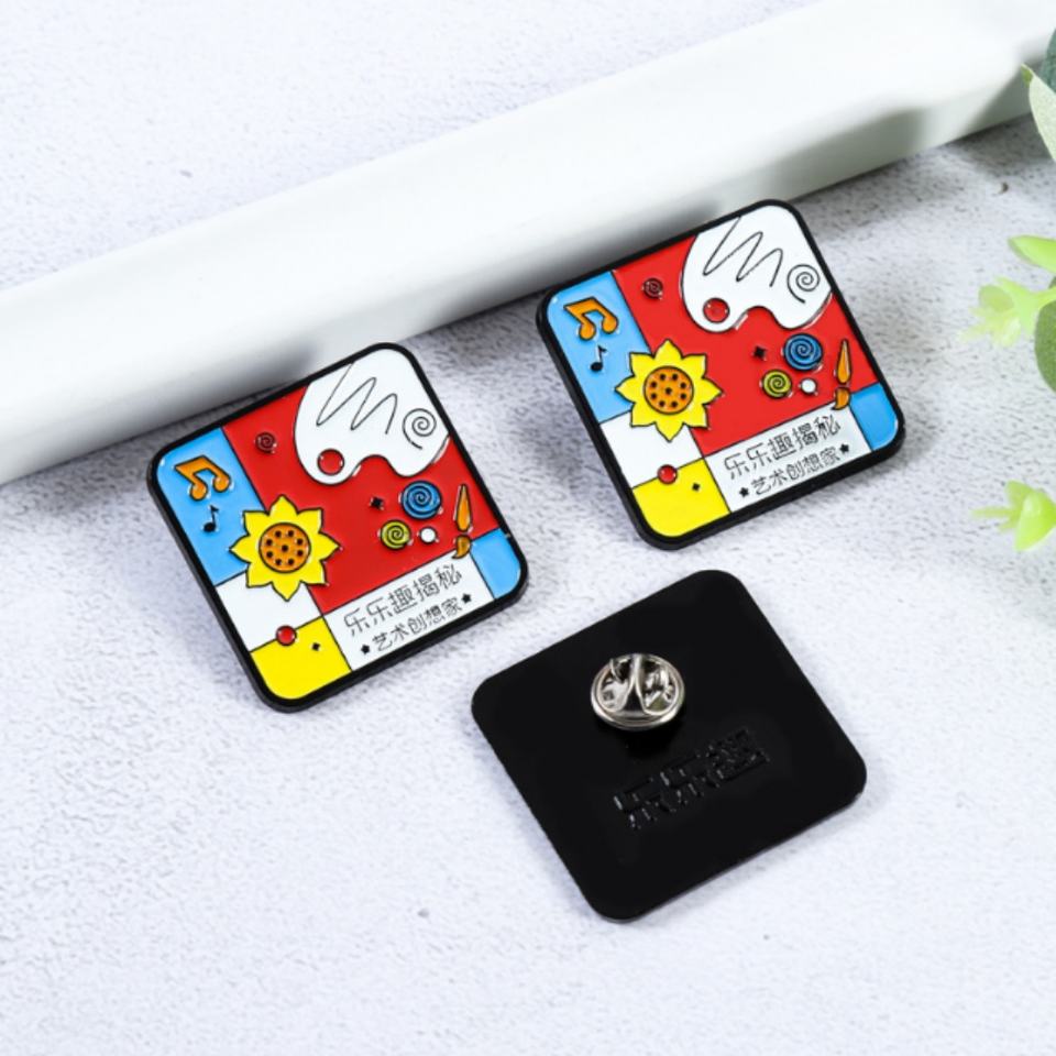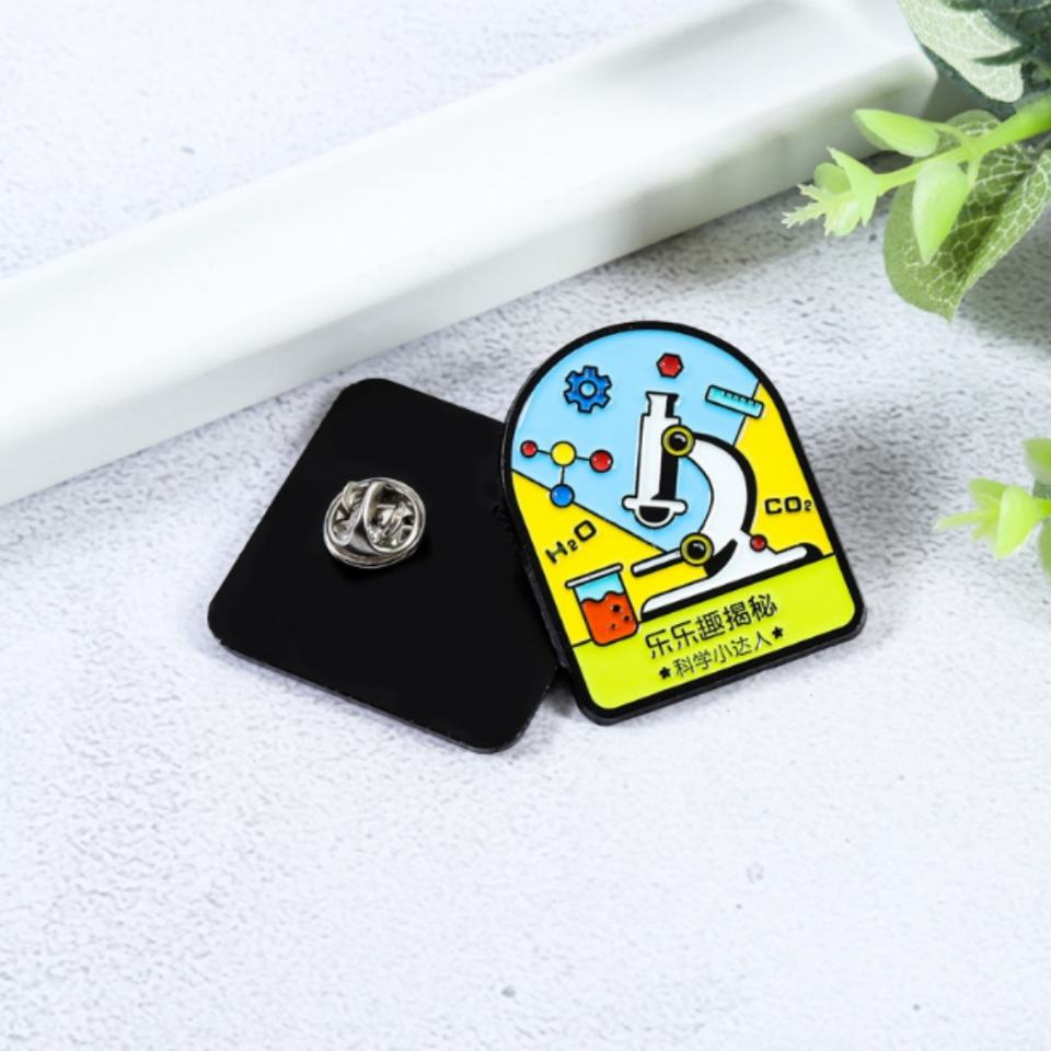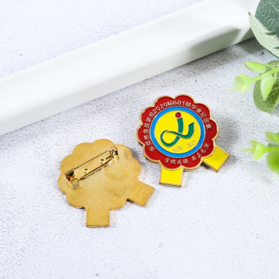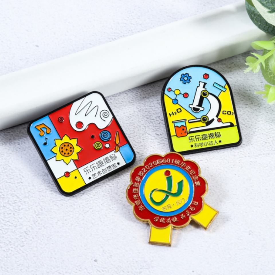 Insignia escolar de metal esmaltada y epoxi, llena de color