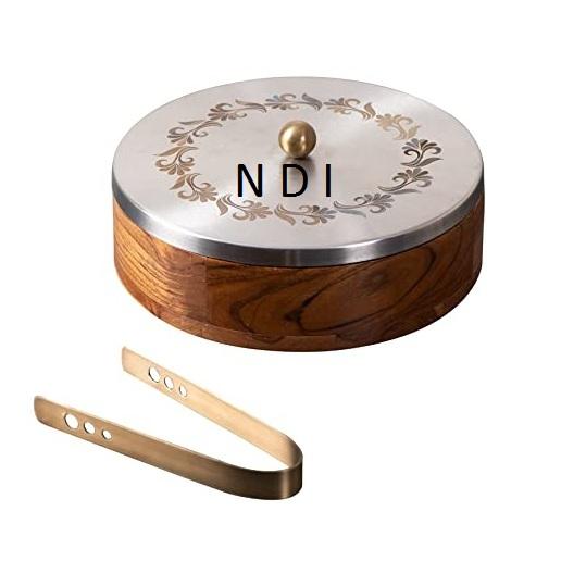 Olla de servir de madera artesanal con pegatinas impresas para banquetes de boda, vajilla, catering y otros fines.