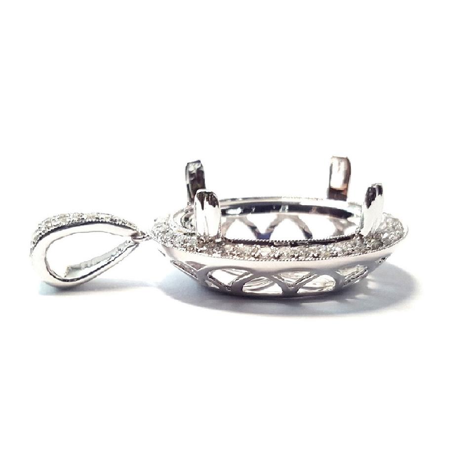 Enchanting Noble Milgrain Design Memorial 18K Oro blanco sólido Diamante real Joyería fina Oval Semi Mount Colgante para mujeres