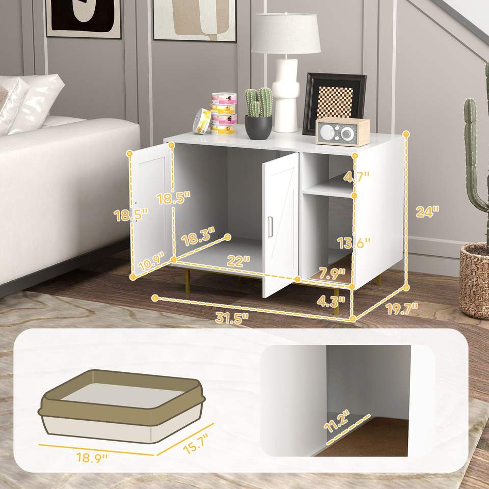 Mesa Auxiliar con Rascador y Almacenamiento, 31.5 x 20 x 24 Pulgadas, Recinto para Caja de Arena para Gatos, para Sala de Estar y Dormitorio