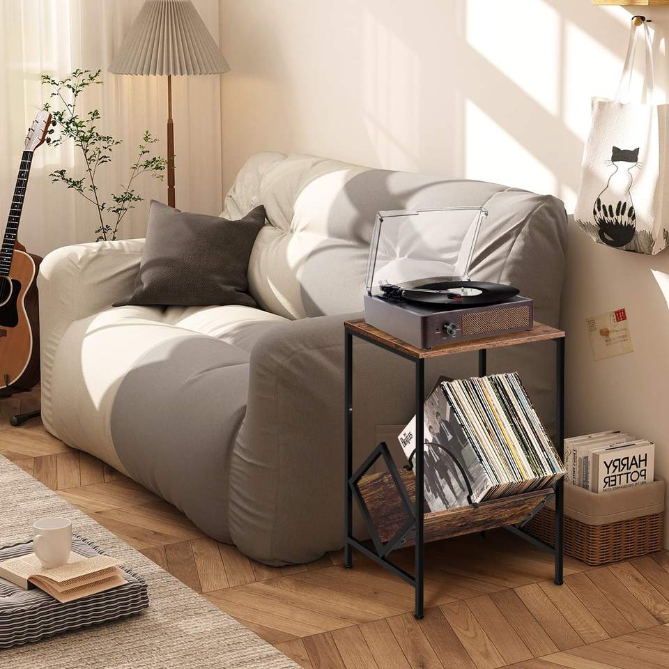 Mesita de noche de mesa auxiliar hasta 80 álbumes, soporte de reproductor de discos de vinilo de Metal para sala de estar, dormitorio, almacenamiento de oficina, personalización de Amazon