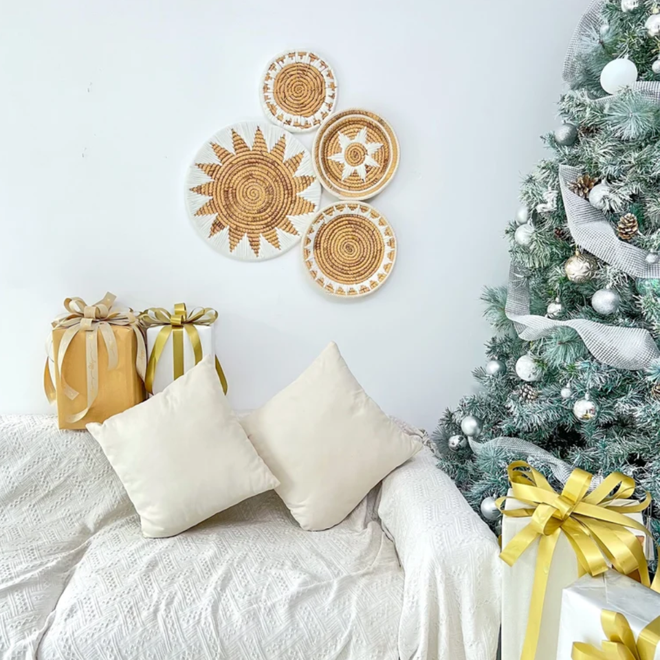 Nombre del producto:Blanco y plátano natural corteza tejido disco decoración de la pared