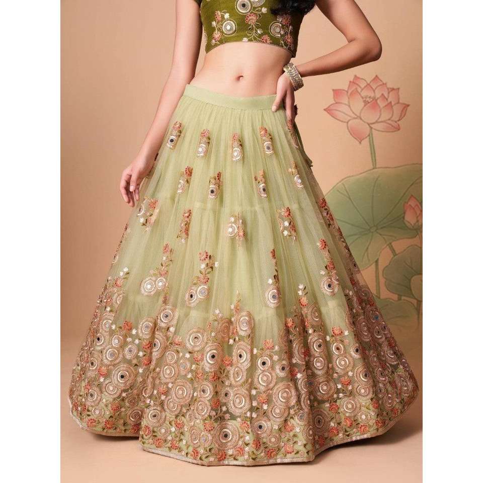 Encantador Lehenga Choli Verde Pastel con Bordado de Espejo, Semi-Confeccionado, para Fiestas, de Zeel Clothing