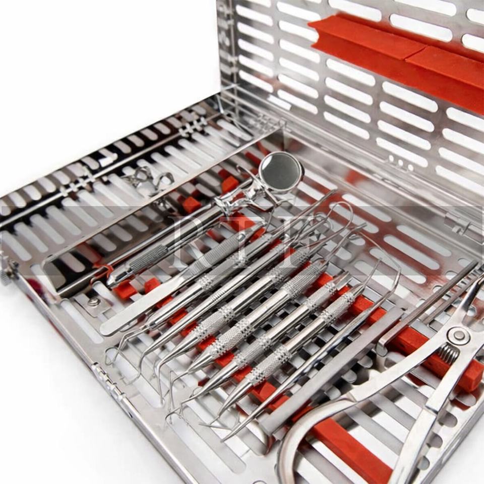 Juego de Instrumentos Endodónticos Dentales de 14 Piezas, Kit de Conductos Radiculares de Acero Inoxidable con Casete de Esterilización, Apto para Autoclave
