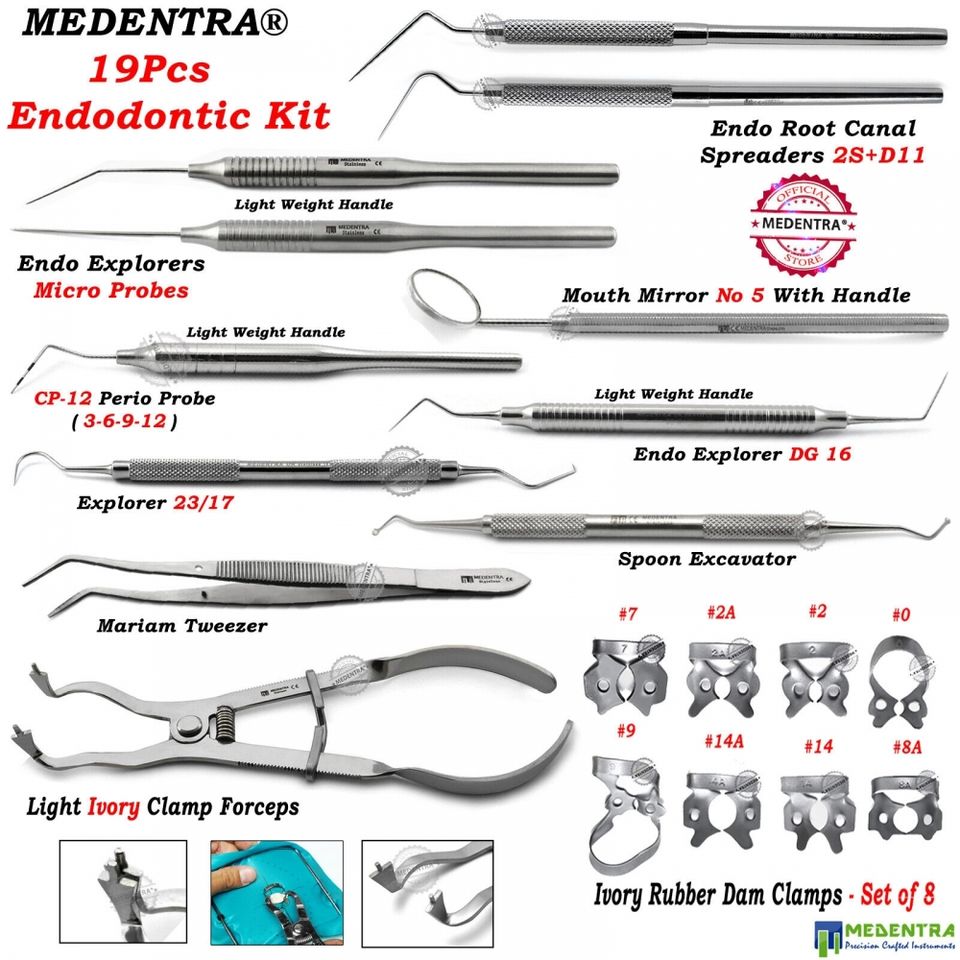 Kit de procedimiento endodóntico Exploradores personalizados Escaladores Esparcidores Instrumentos de presa de goma Materiales de la mejor calidad CE UKCA