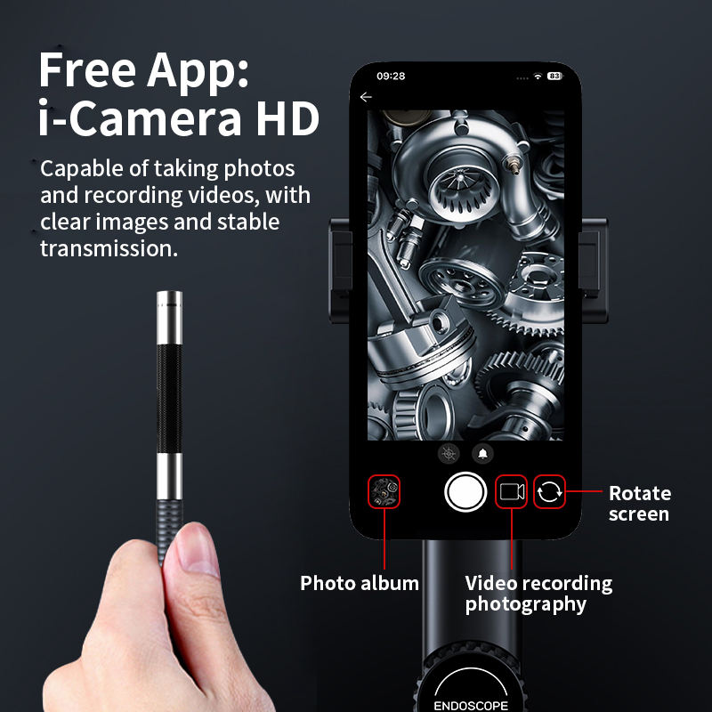 Cámara Endoscópica con Luz, Impermeable IP67, Compatible con Android y iPhone, Boroscopio con 8 Luces LED