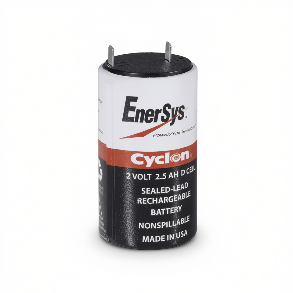 Batería Recargable de Plomo Sellada EnerSys Cyclon 2 Voltios 2.5 Ah Tipo D para Sistemas de Alimentación Ininterrumpida, Fabricada en Italia