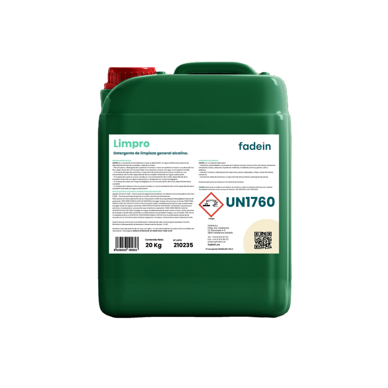 Detergente desengrasante alcalino energético FADEIN 5%-15% ingrediente activo líquido multiusos para limpieza de superficies de acero inoxidable