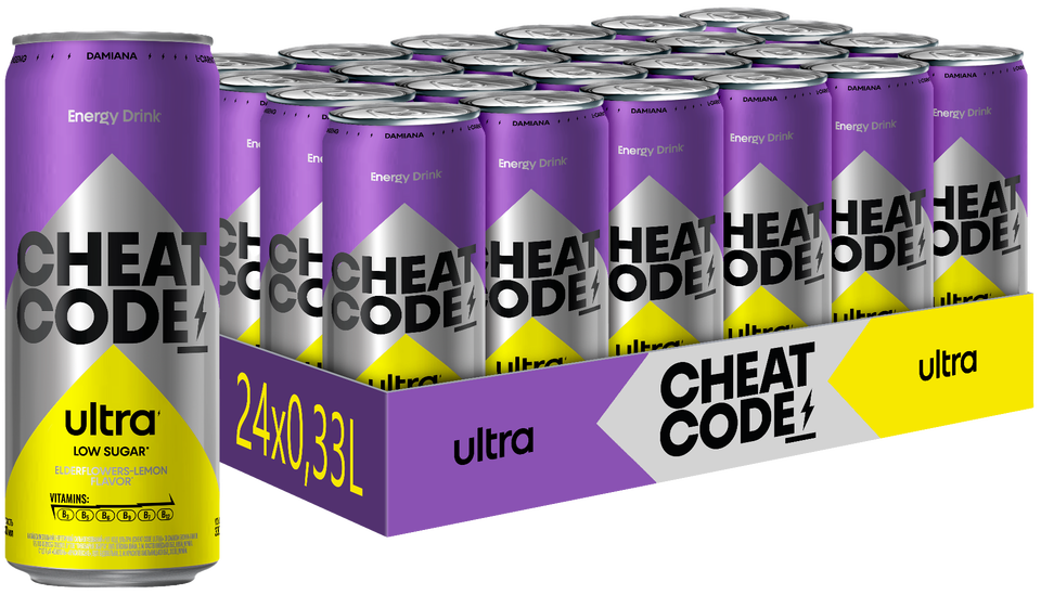 Bebida Energética Cheat Code Saborizada Ultra Baja en Azúcar, Dietética y Deportiva, Lata de 330 ml, con L-Carnitina y Taurina, En Frío