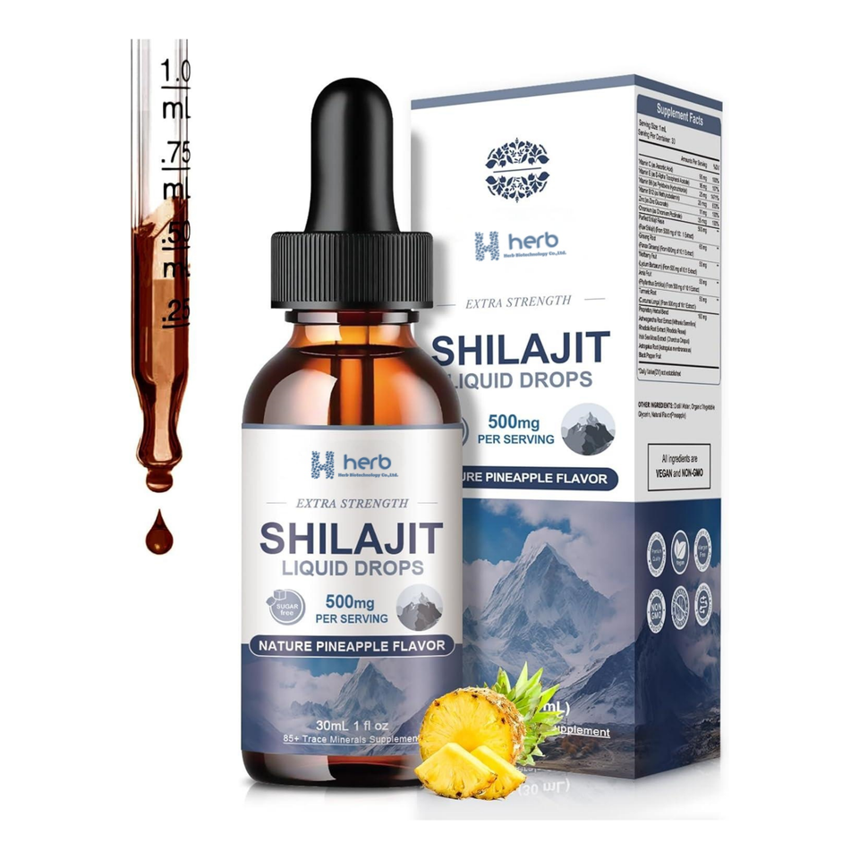 Soporte de energía e inmunidad con más de 85 minerales traza y ácido fúlvico-Gotas líquidas Himalayan Shilajit