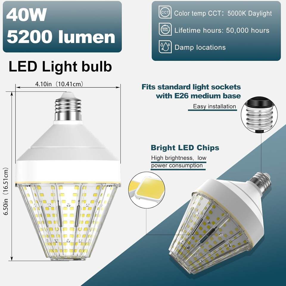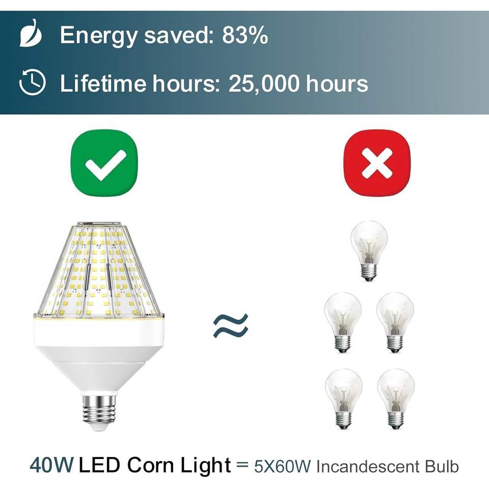 Energy Saving LED Corn Cob Light Bulb 40 Watt with 300 Watt Equivalent 5000K Daylight E26 Base for Garages