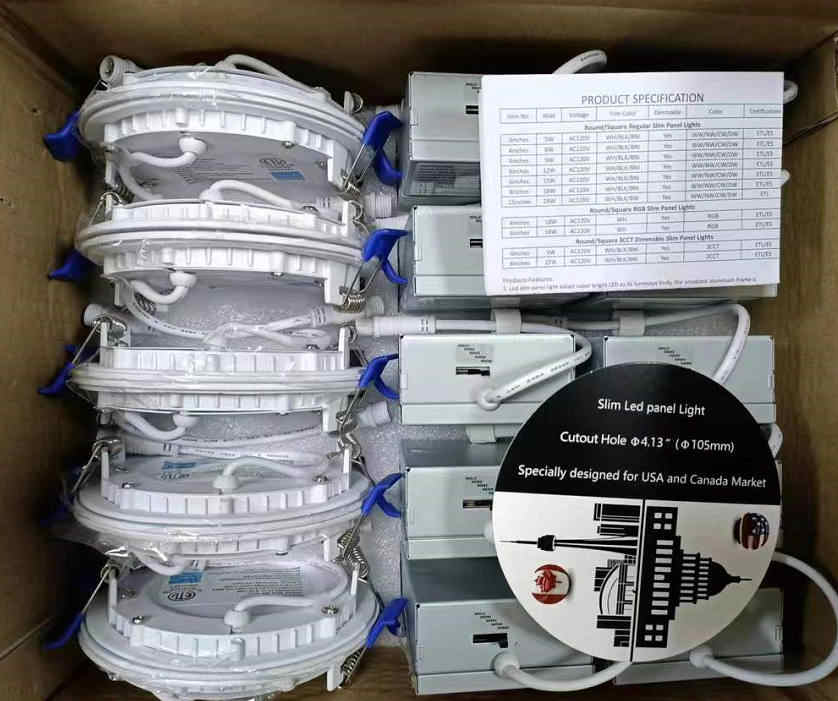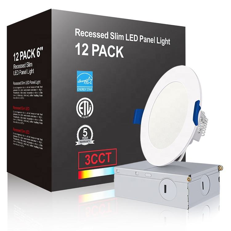 Energy Star ETL Downlight ajustable 4 6 pulgadas 12W 1050lm 5CCT Regulable Empotrado Redondo Ultra Delgado Panel LED Luces Techo