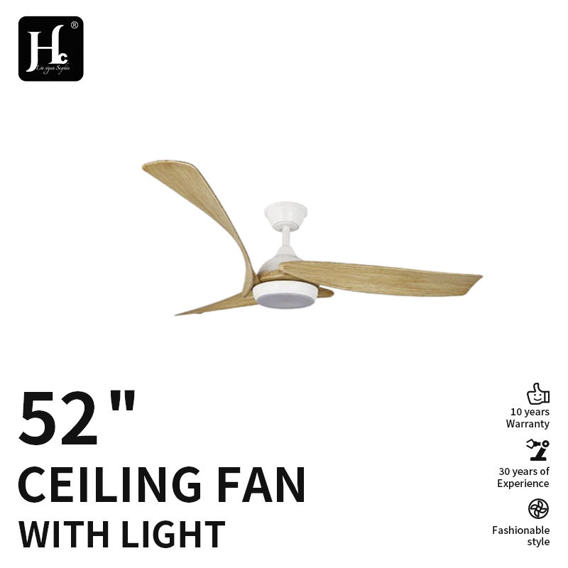 Ventilador de techo LED de 3 aspas con luz, motor de CC de 52 pulgadas, iluminación ajustable y de bajo consumo.