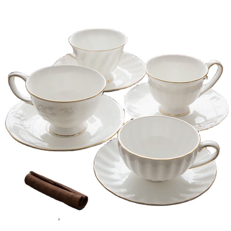 Juego de Taza y Platillo Inglés, Juego de Café de Porcelana Fina, Juego de Té de Porcelana Blanca Lisa Inglesa, Tazas de Café Británicas