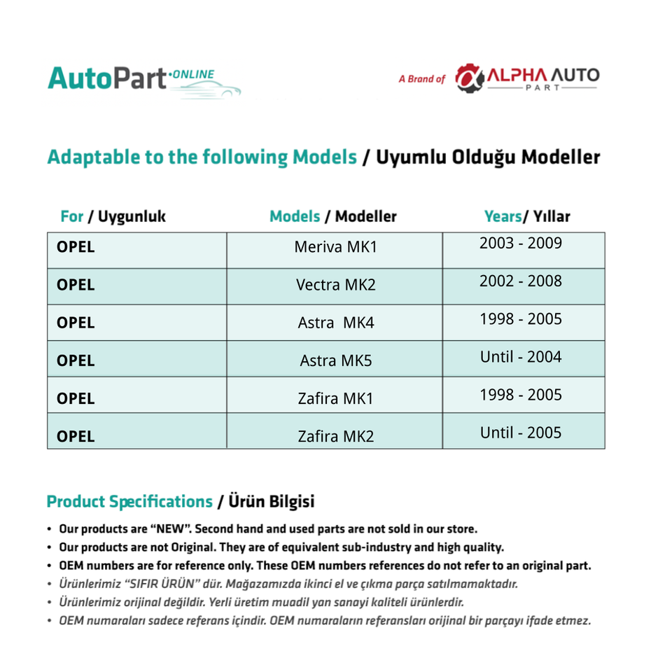 Marca:Opel Compatible Spare Parts