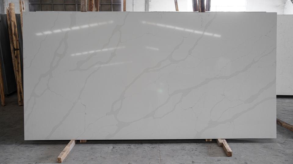 Encimera de Cuarzo de Ingeniería, Gran Formato, Gris Calacatta, Diseño Moderno, Impermeable y Duradera, para Baño o Mesa