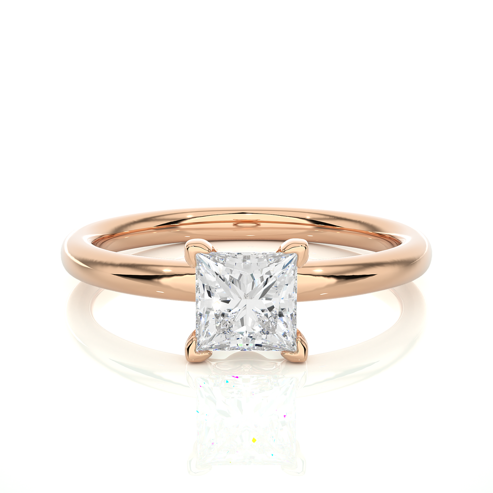 Anillos de Compromiso de Oro Blanco y Amarillo de 9k, 10k, 14k y 18k con Diamantes de Laboratorio de Corte Princesa de 1CT DEF VS VVS