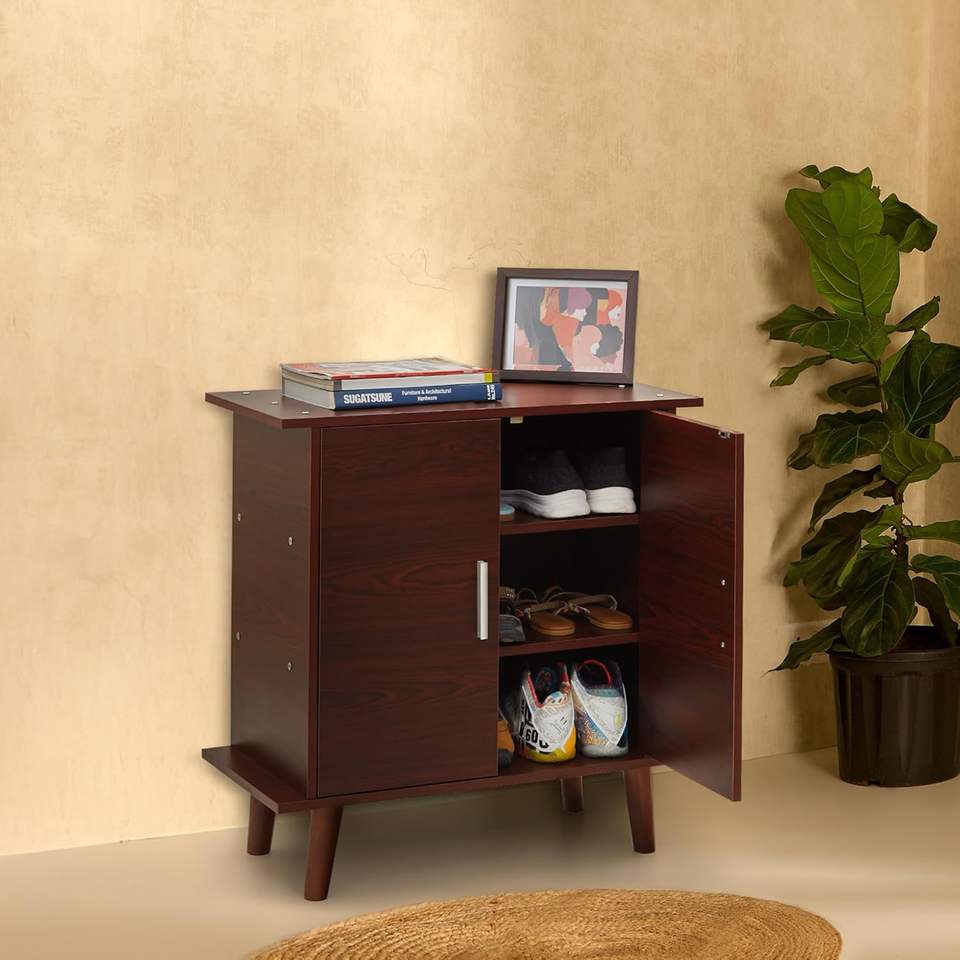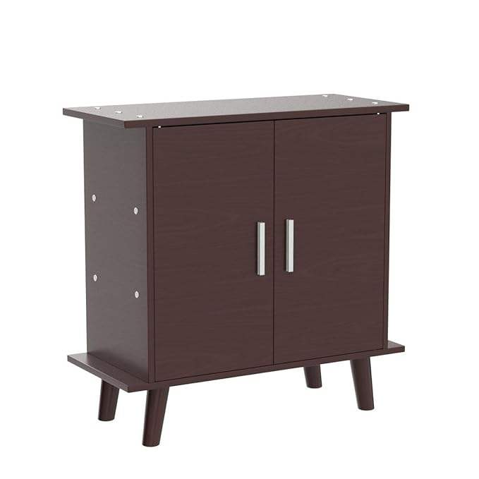 Zapatero de Madera Sintética para el Hogar con Patas de Madera, 3 Estantes, 2 Puertas, Capacidad para 9 Pares de Zapatos, 3 Años de Garantía, Madera de Palisandro