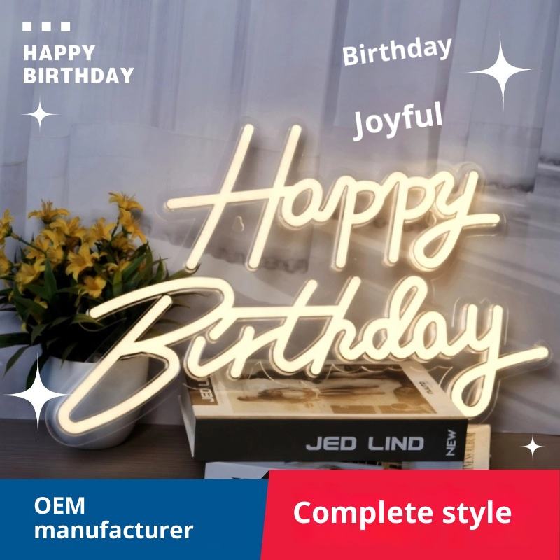 Inglés letras luminosas acrílico impermeable LED luz de neón 2700K suave cálido blanco interior Feliz cumpleaños fiesta reunión escena