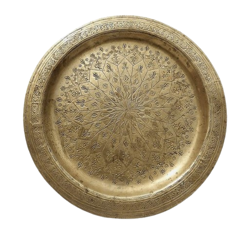 Plato Decorativo de Metal con Diseño Grabado, para Uso en Hoteles, Cocina y Catering, Plato de Servir Comida Hecho a Mano