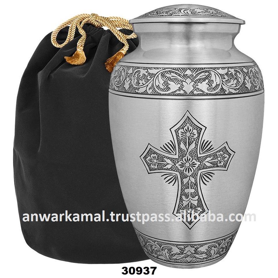 Diseño grabado Grace and Mercy Pewter Cross Silver Brass Cremación Urna por A.K India