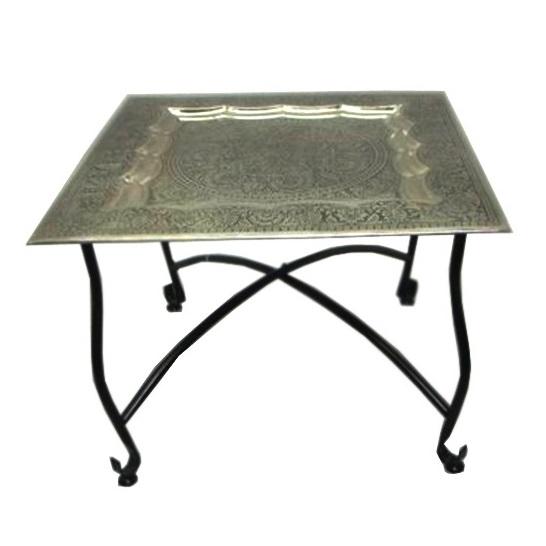 Bandeja de hierro grabada Mesa marroquí Mesa auxiliar Anidación Marroquí Acero inoxidable Metal Marroquí Mesa de centro moderna