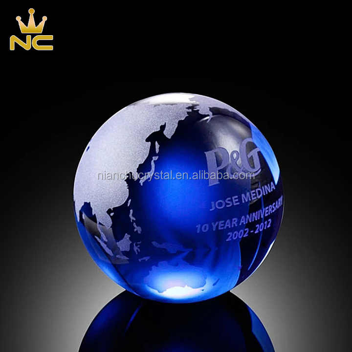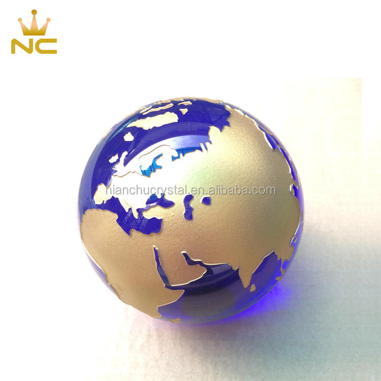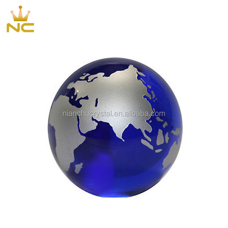 Globo de cristal grabado de plata y oro con mapa del mundo, bola azul de 60mm y 80mm para pisapapeles, regalos de negocios
