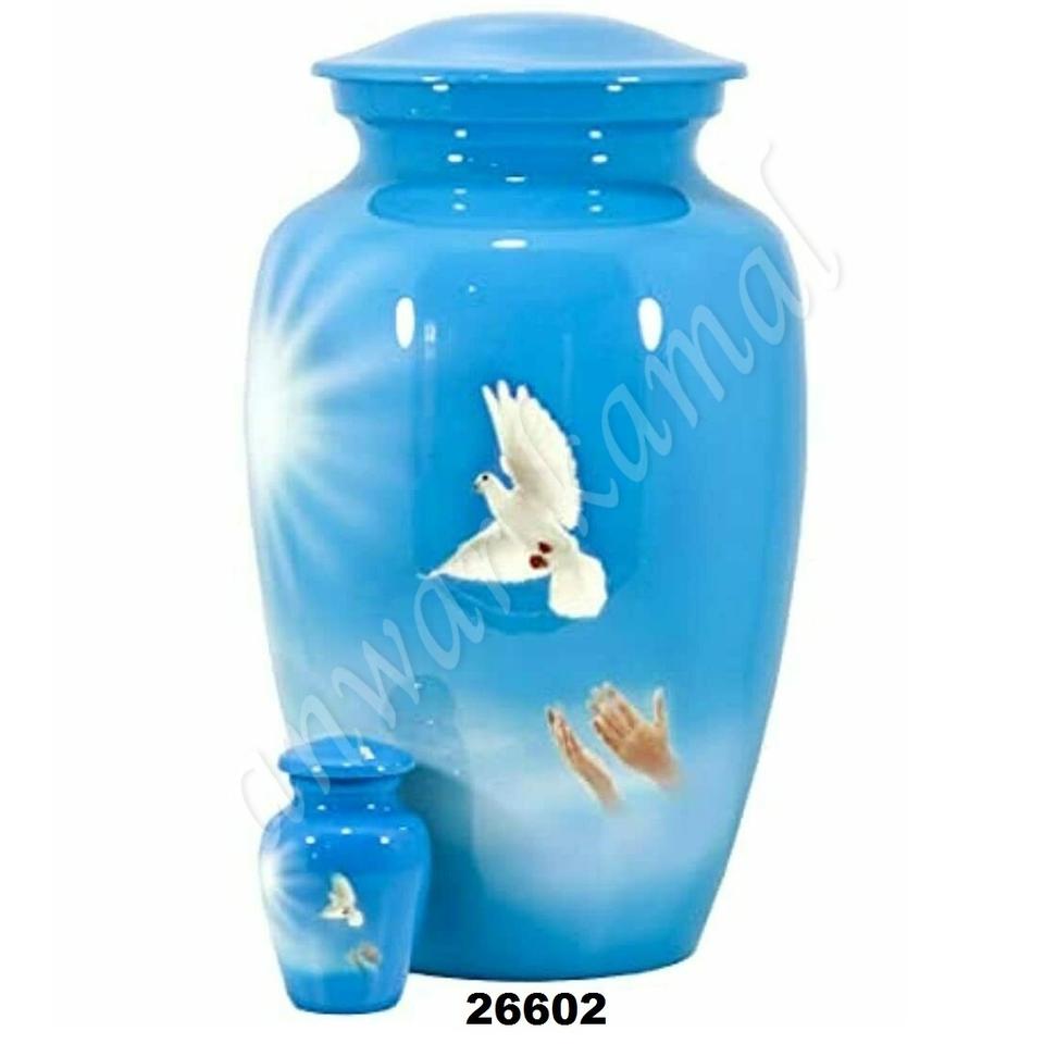 Urnas de cremación para adultos con serenidad azul grande impresas con paloma blanca grabada para cenizas humanas