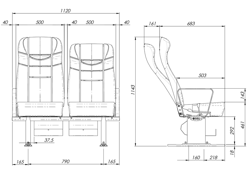 Asiento de pasajero de autobús de alta calidad GS 502 con cómodo respaldo reclinable para uso en barco