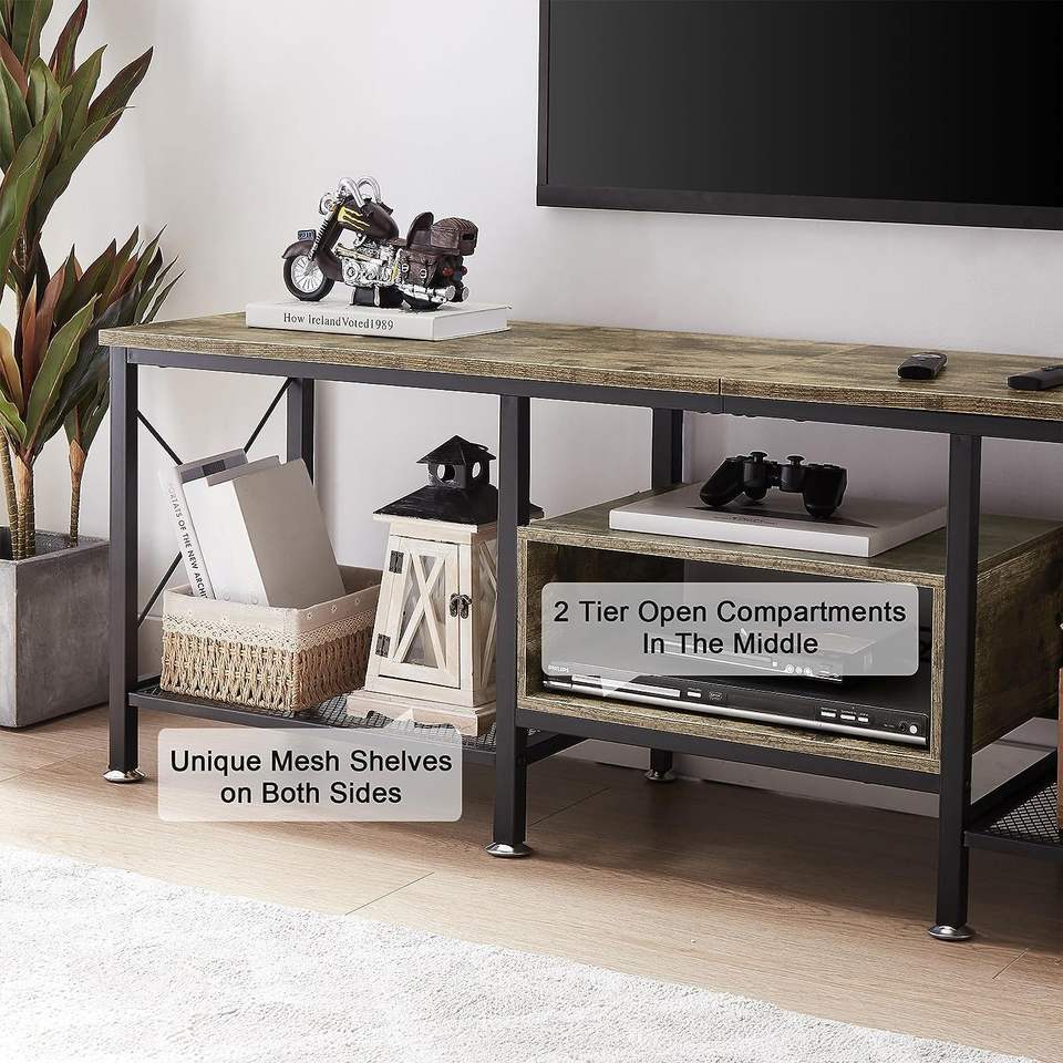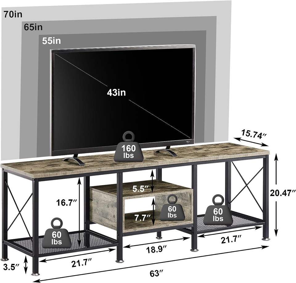Centro de entretenimiento Marco de metal Consola de 3 niveles con estantes de almacenamiento Soporte de TV industrial para gabinete de televisión de 55 63 75 pulgadas