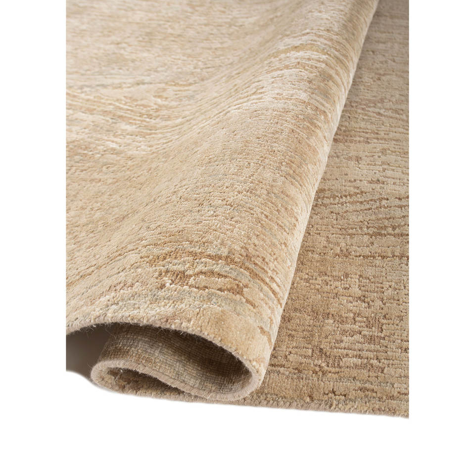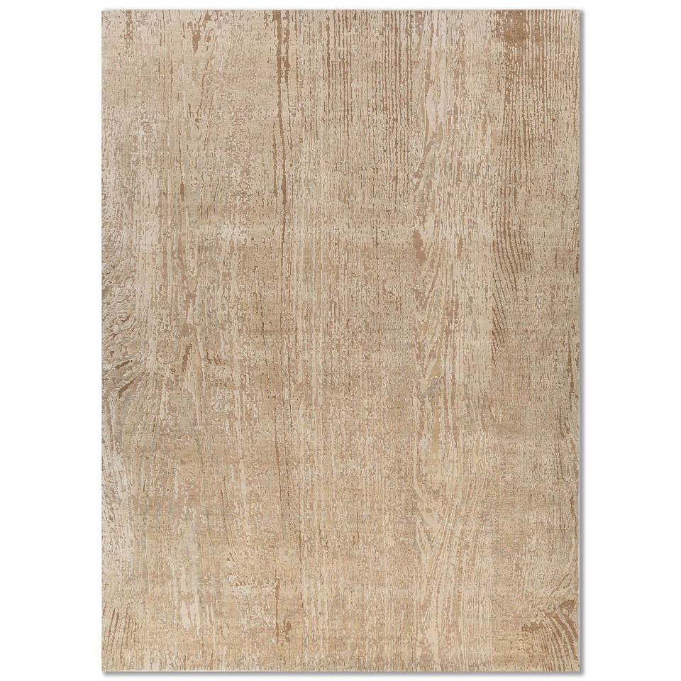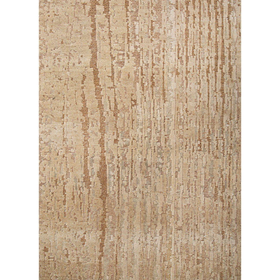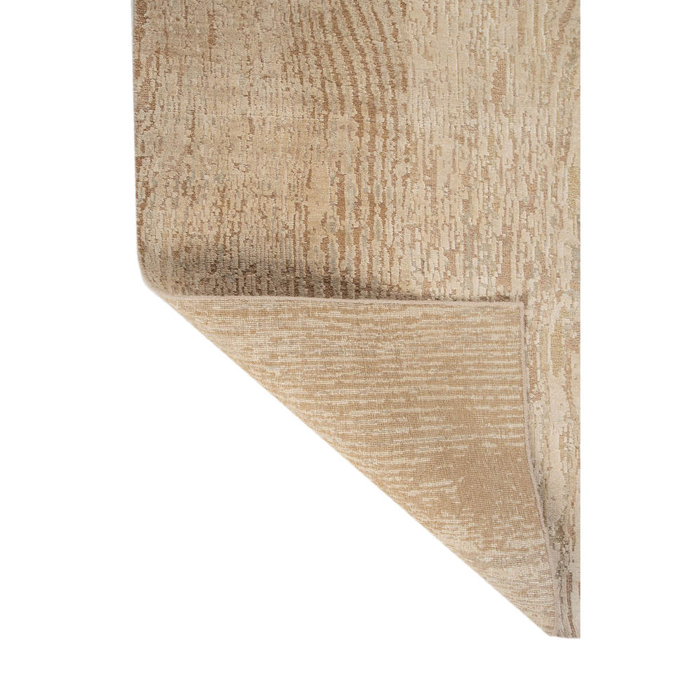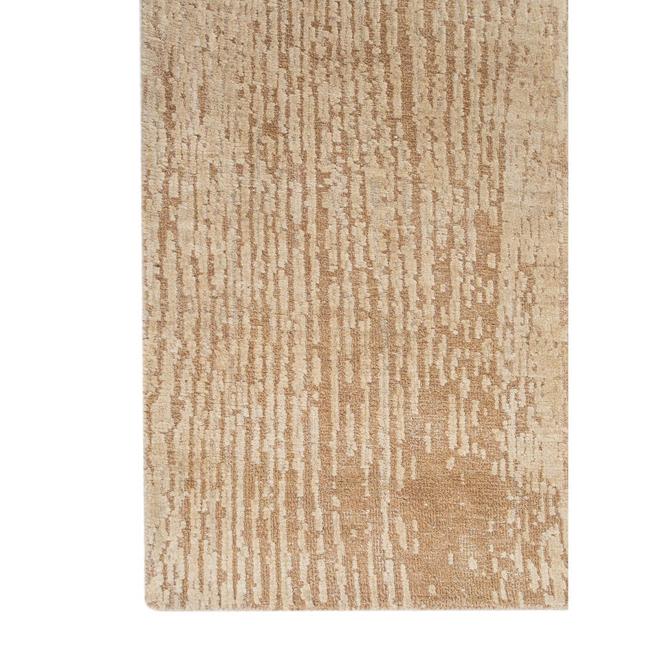 Alfombra Entropía Beige Marrón de Lana y Seda Anudada a Mano, Diseño Abstracto para Sala de Estar, Pasillo, Rectangular, Tipo Rompecabezas para el Hogar