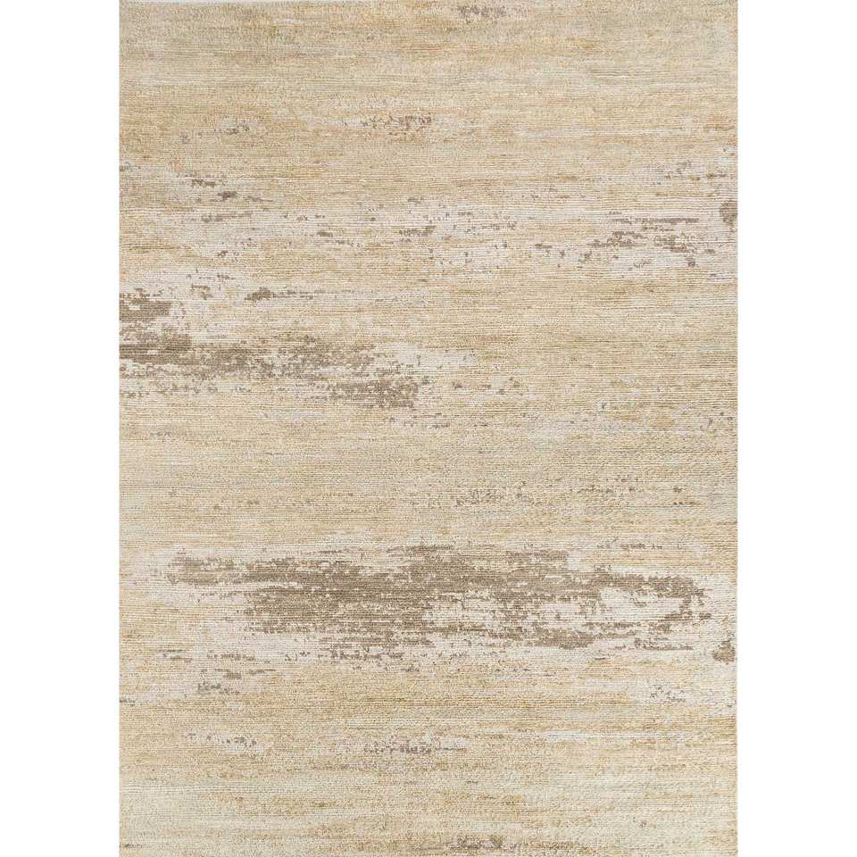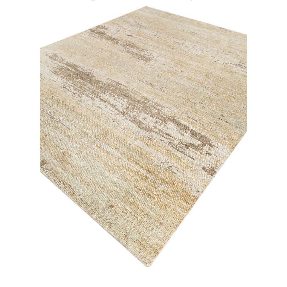 Alfombras de Lana Entrelazadas a Mano Entropy Gold 9x12, Diseño Abstracto Rectangular Tipo Rompecabezas para Entrada, Dormitorio o Pasillo - Reb-1595