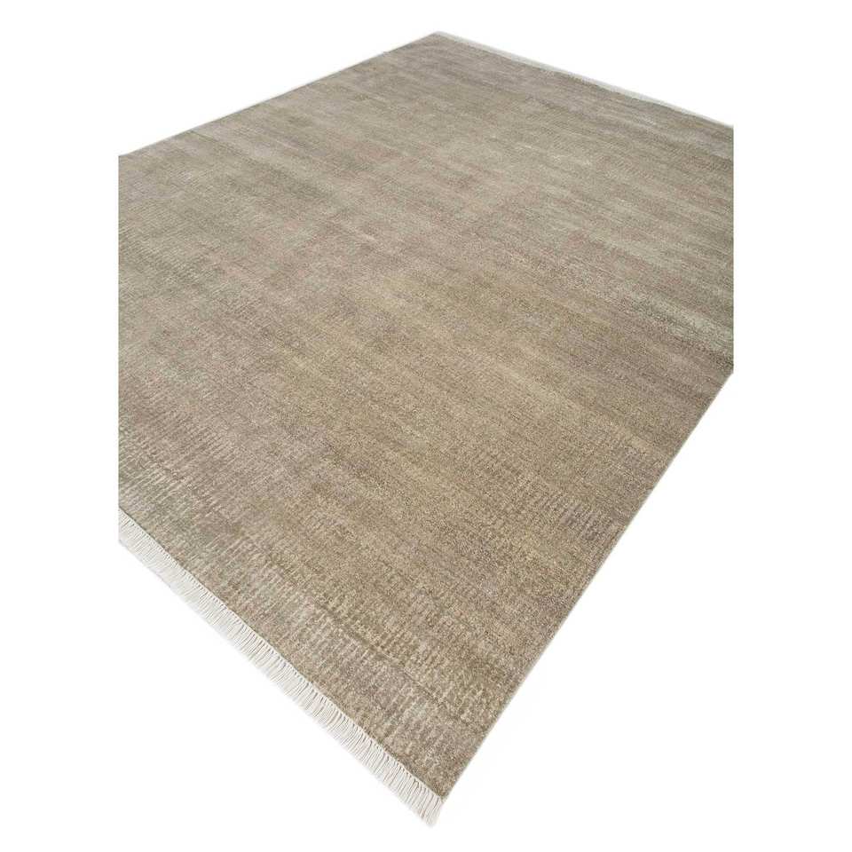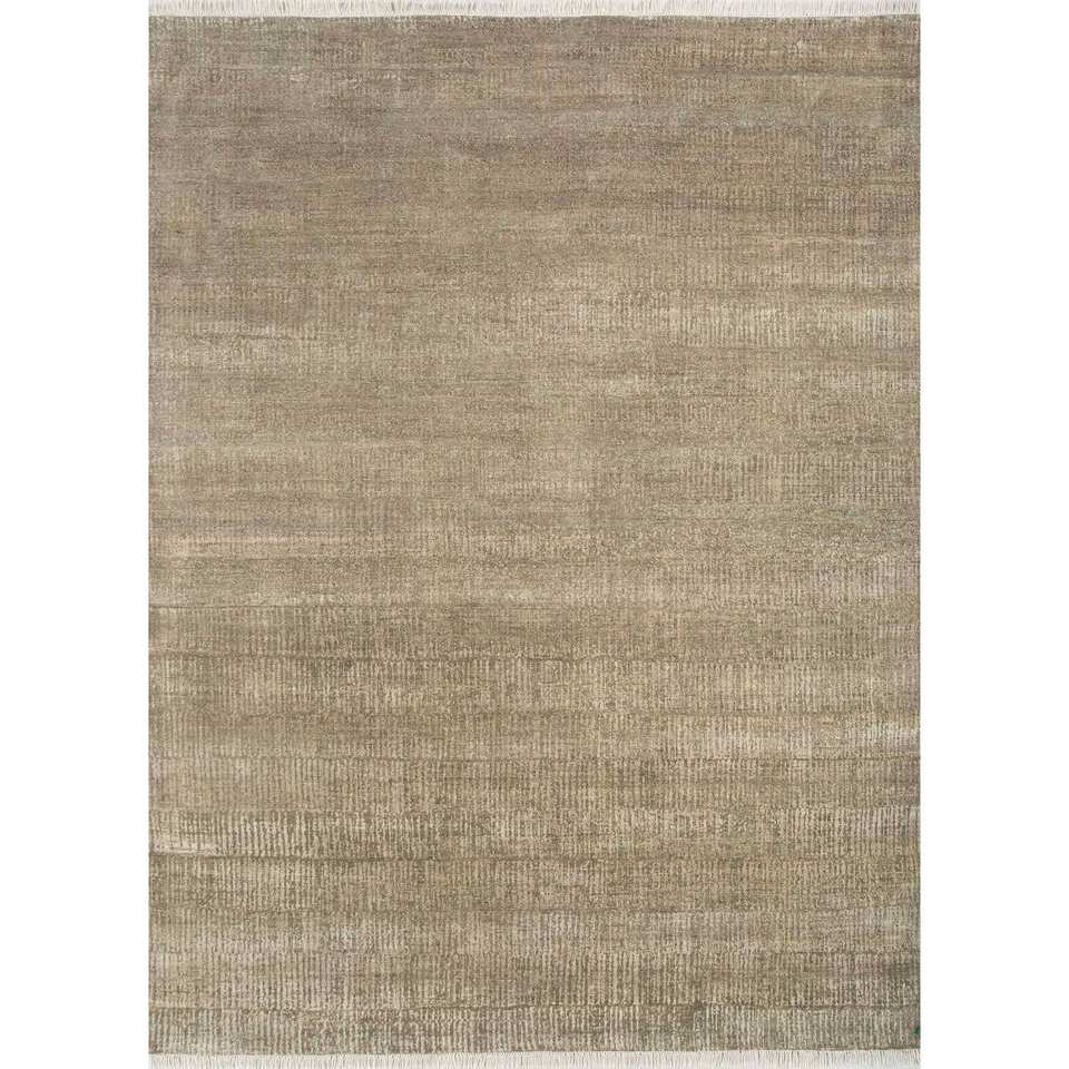 Alfombra de Lana Anudada a Mano Entropy Green AKWS-1478, Alfombra Rectangular de Color Sólido para Sala de Estar, 10 mm de Grosor, Material de Viscosa para el Hogar