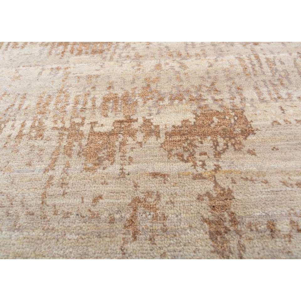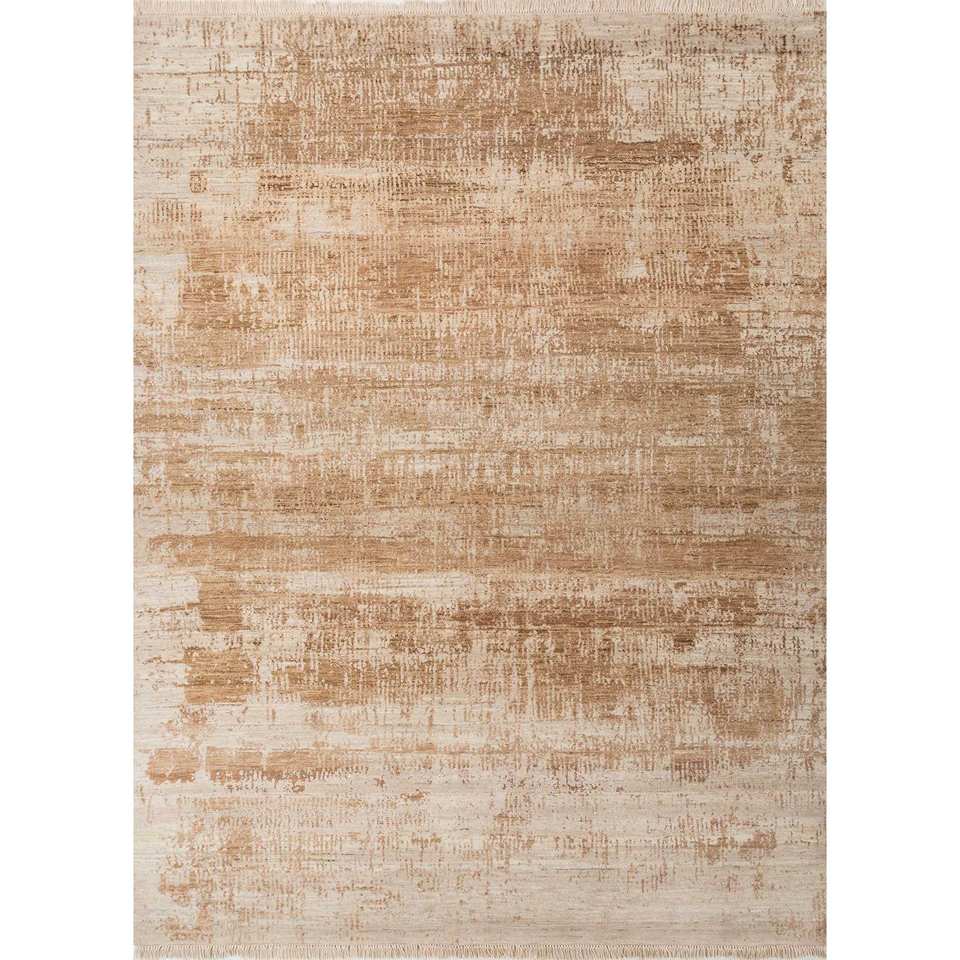 Alfombra Grande Entropy Ivory Anudada a Mano, Rectangular 9x12, Lana Afgana y Seda de Bambú, Patrón Abstracto para el Hogar y Pasillo - Akwb-3541