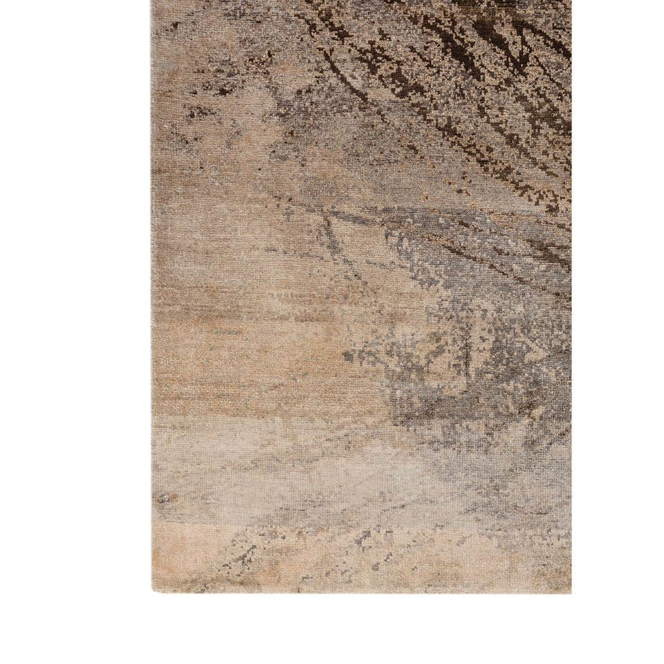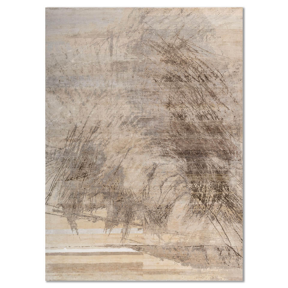 Alfombra de seda anudada a mano Entropy Ivory, modelo AKPS-13012, rectangular, con diseño abstracto, suave, para sala de estar, modelo para habitación.