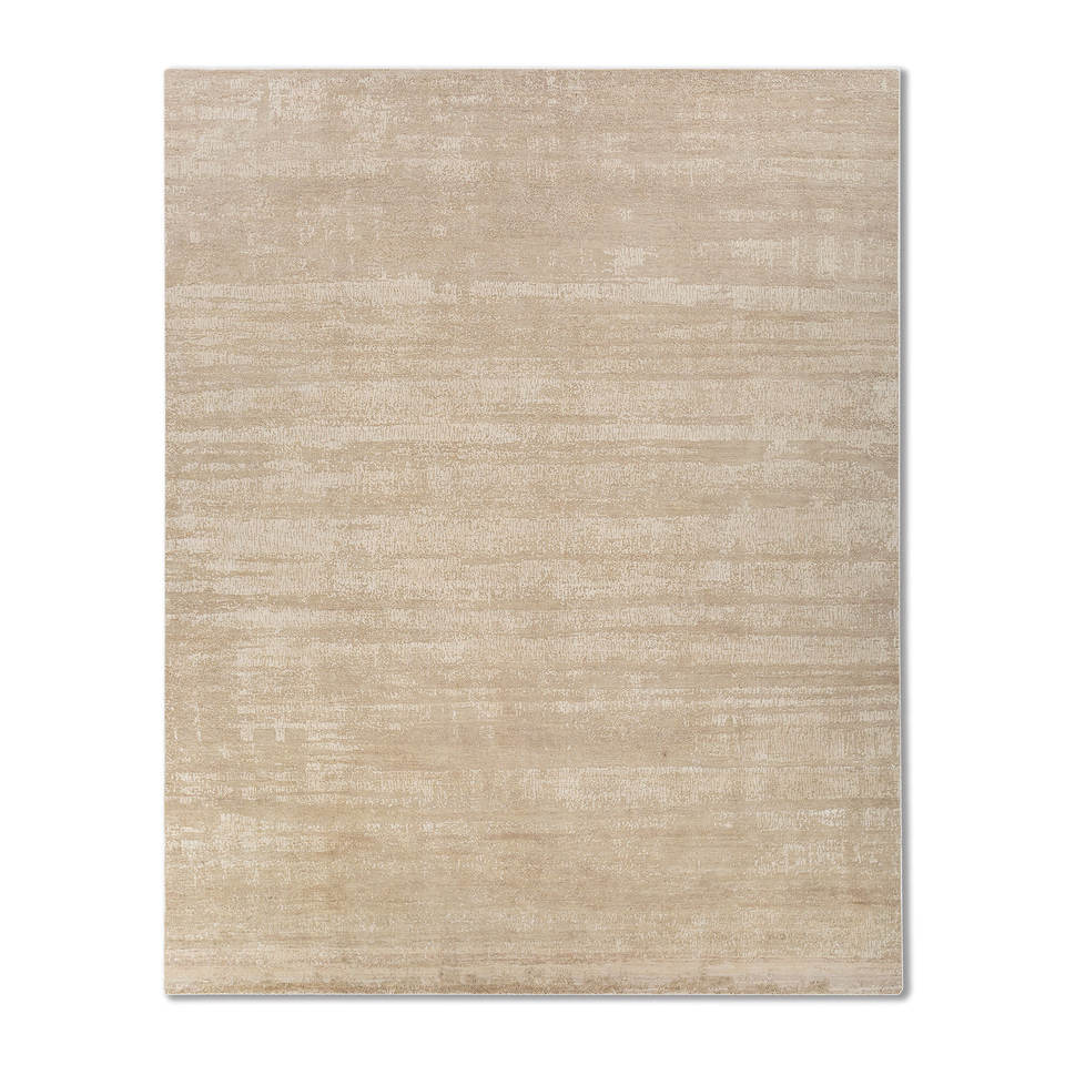 Alfombra de Lana y Seda Entropy Ivory Anudada a Mano AKWS-3031, Alfombra Rectangular de Color Sólido para Sala de Estar, Alfombra de Yute para Pasillo