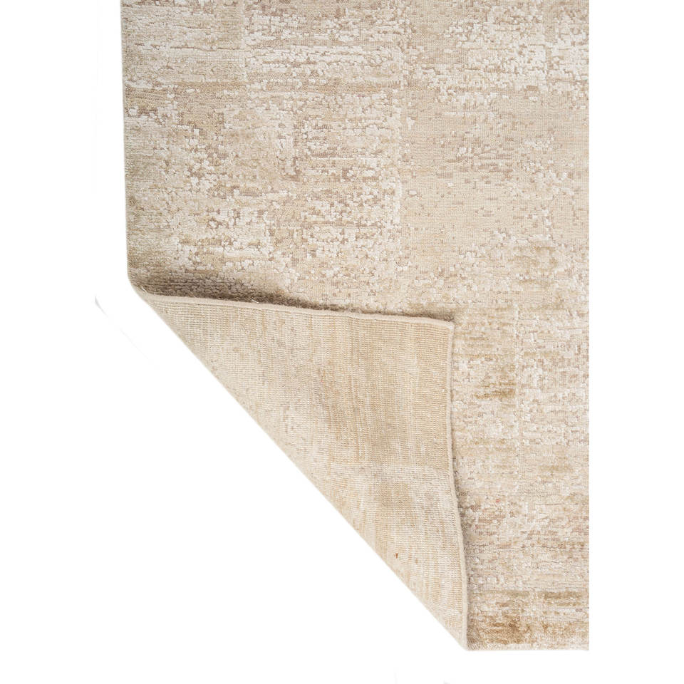 Alfombra Rectangular de Lana y Seda Entropy Ivory, Tejida a Mano, Color Sólido, Modelo Esh-1520 (Cs-01) para Sala de Estar y Pasillo