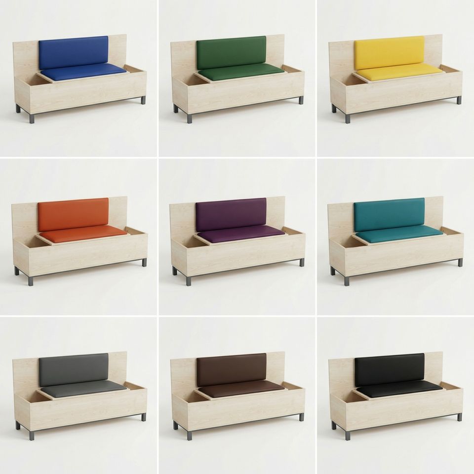 Banco de entrada con almacenamiento, tablero de partículas de melamina, asiento tapizado, gabinete para guardar zapatos, para uso escolar, de oficina y comercial.
