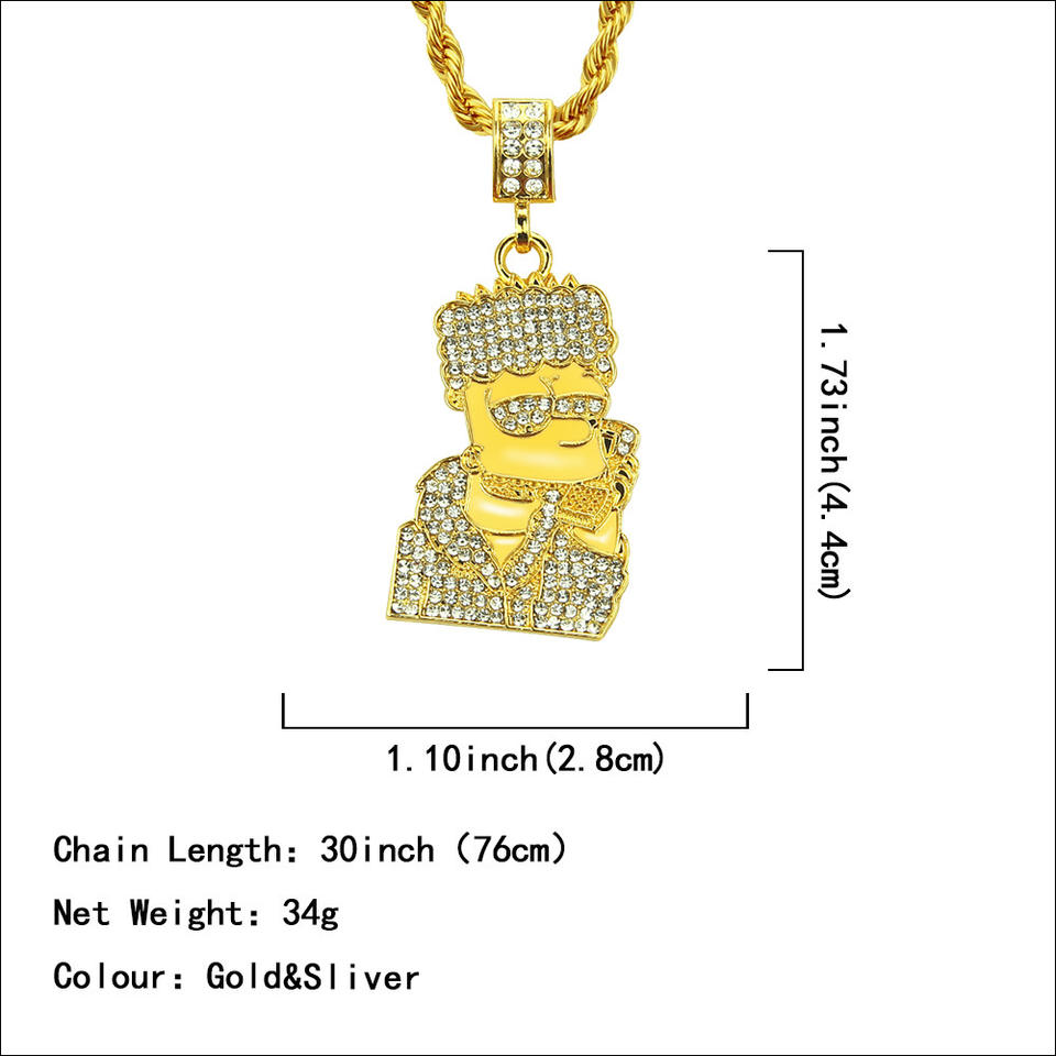 Protección del medio ambiente Hiphop Bling oro color Caballero Negro hombre Punk cristal colgante joyería Collar para hombre
