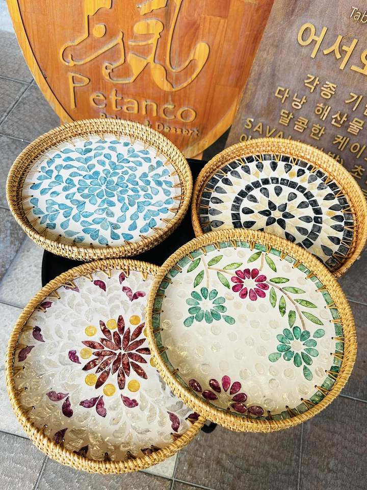 Bandeja de ratán respetuosa con el medio ambiente, bandeja de incrustación de madreperla de material natural, el precio más bajo hecho en Vietnam