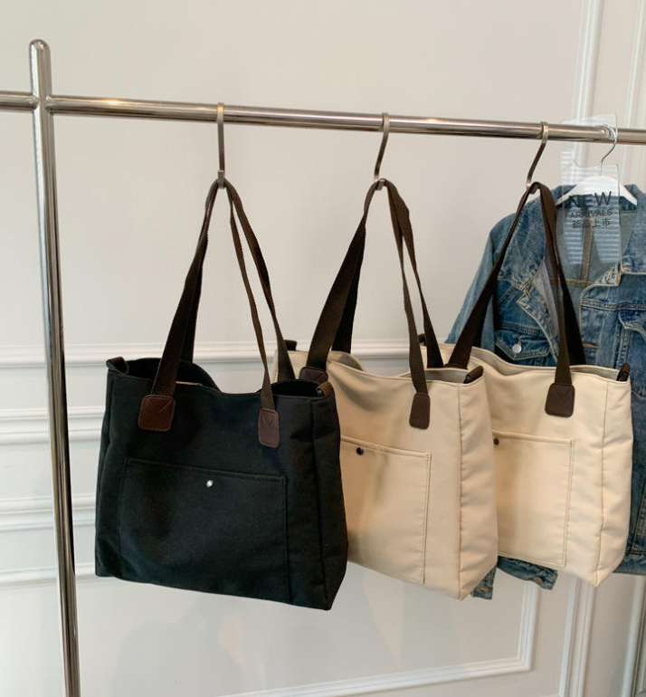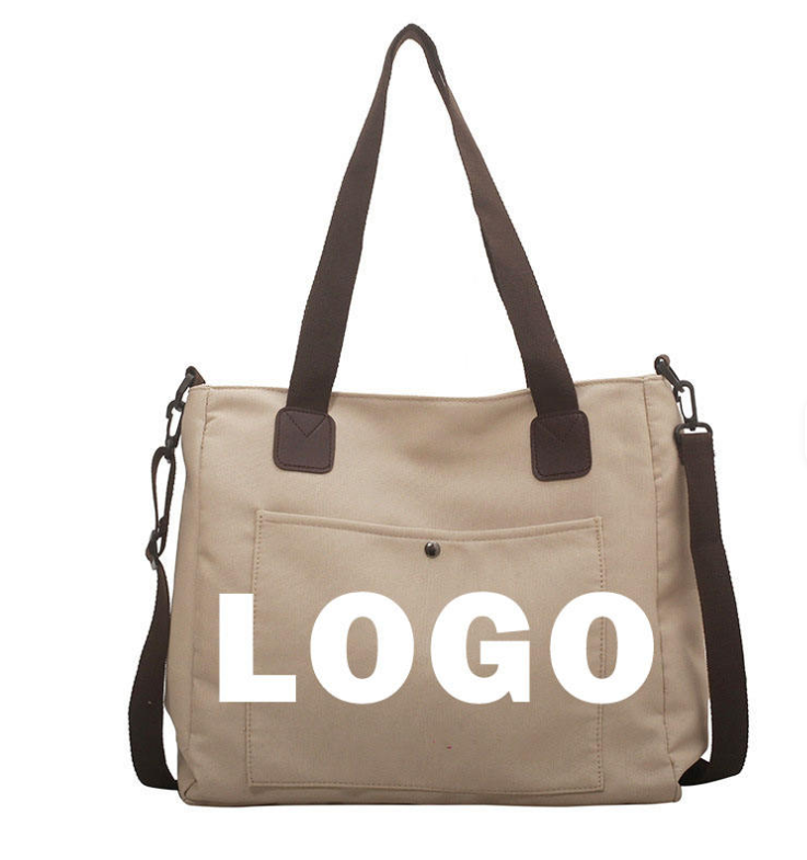 Bolsa de compras de lona de color sólido, ecológica, de gran capacidad, con logotipo personalizado, de un solo hombro y bandolera.