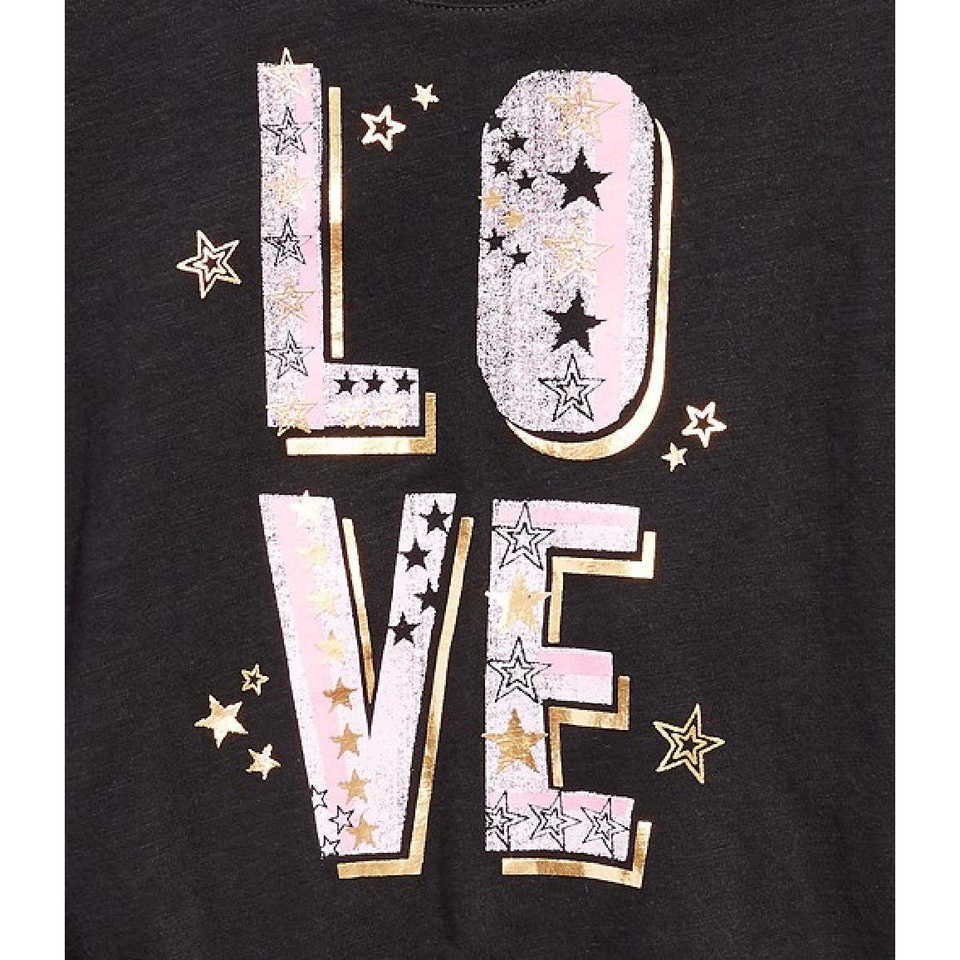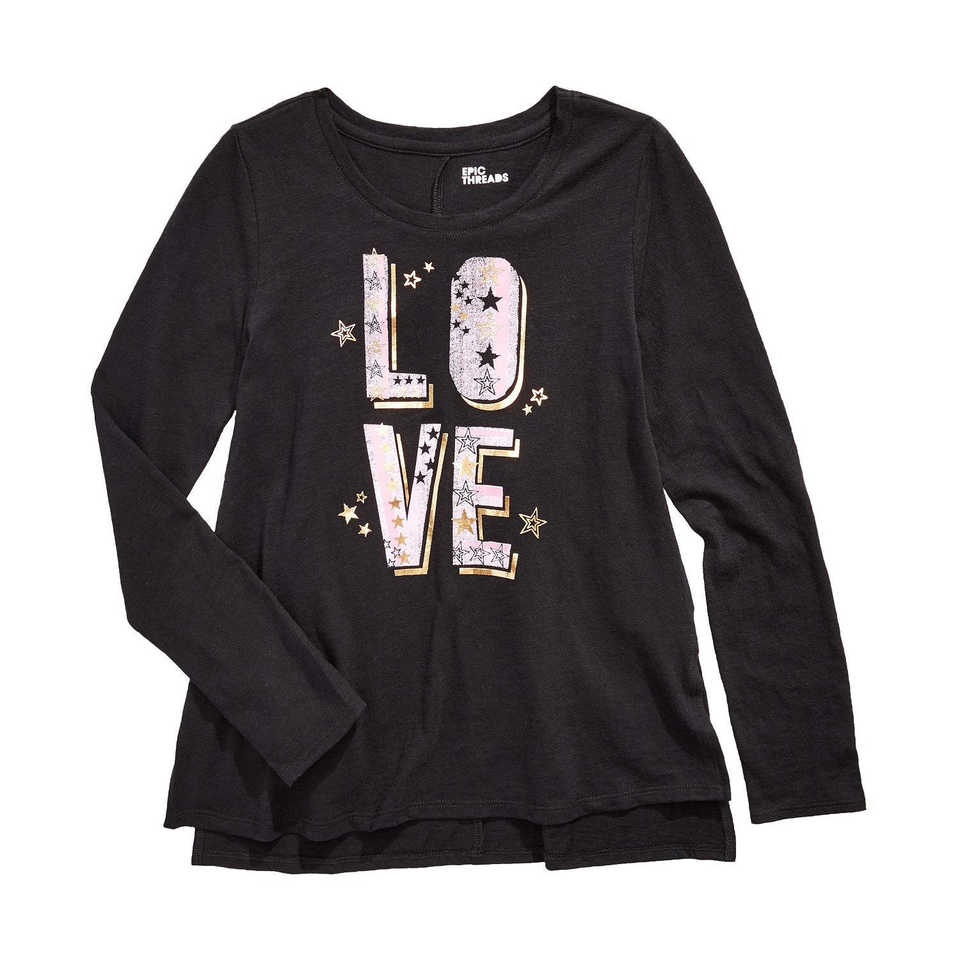 Camiseta Extra Grande Epic Threads para Chicas Grandes, Negra, Corte Ajustado, Estilo Coreano, Algodón Transpirable con Decoración de Estrellas y Letras