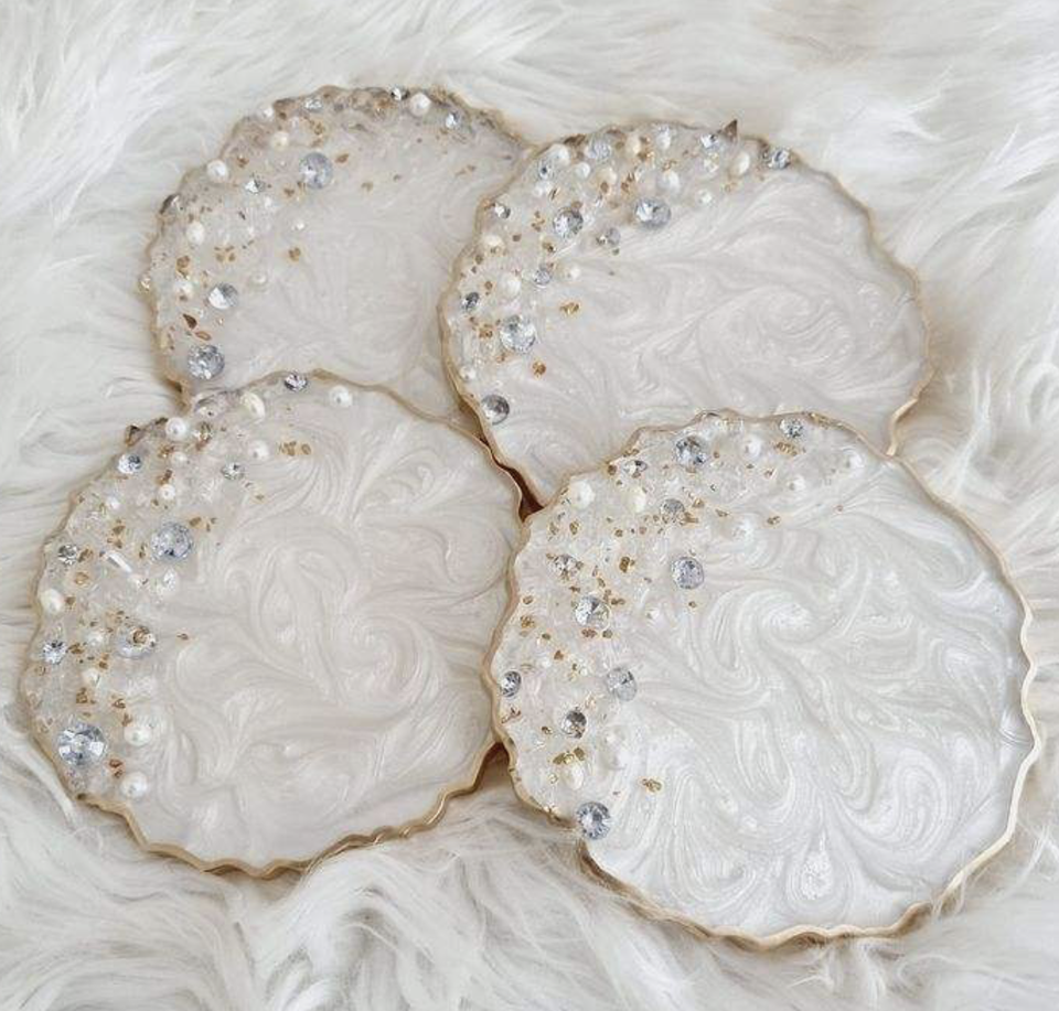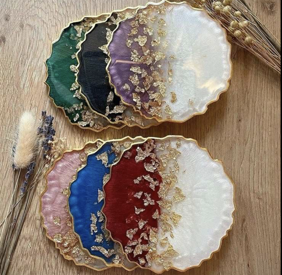 Juego de posavasos de resina epoxi con soporte redondo para restaurante, diseño moderno, juegos de posavasos de resina para tazas de té de la India