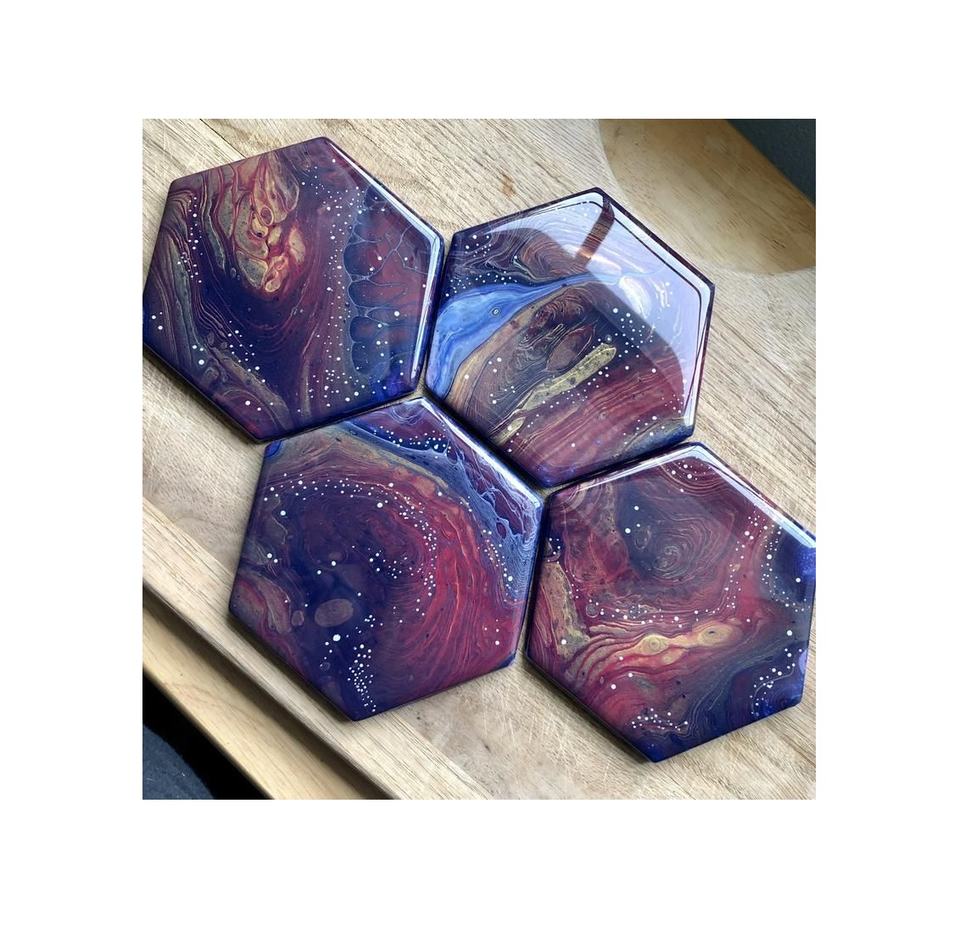 Posavasos de Resina Epoxi con Forma Hexagonal, Pieza de Diseño y Color con Revestimiento para Vasos de Bebidas Diarias y Producto en Oferta