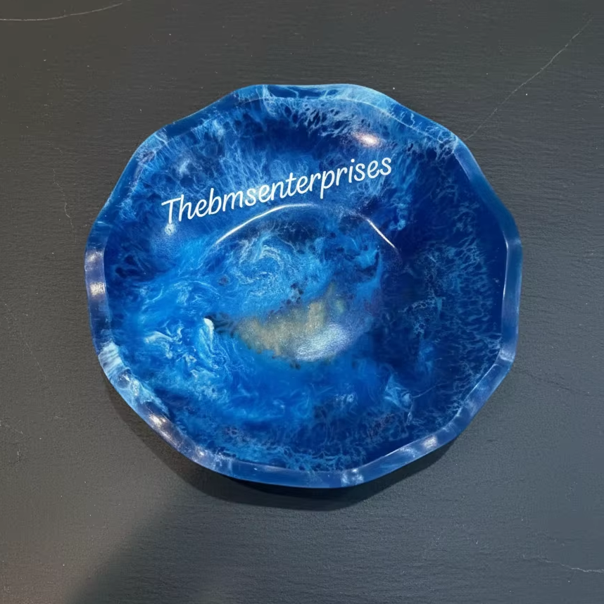Plato de servicio de tierra multiremolino azul océano de resina epoxi para hotel y restaurante en casa Plato de arroz de resina completa con diseño de vieira elegante