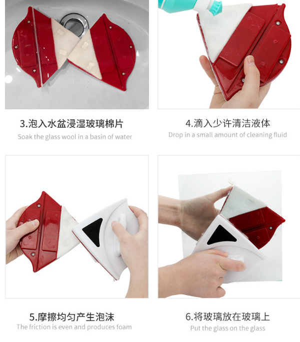 Limpiador de ventanas de vidrio de imán lateral doble de mano