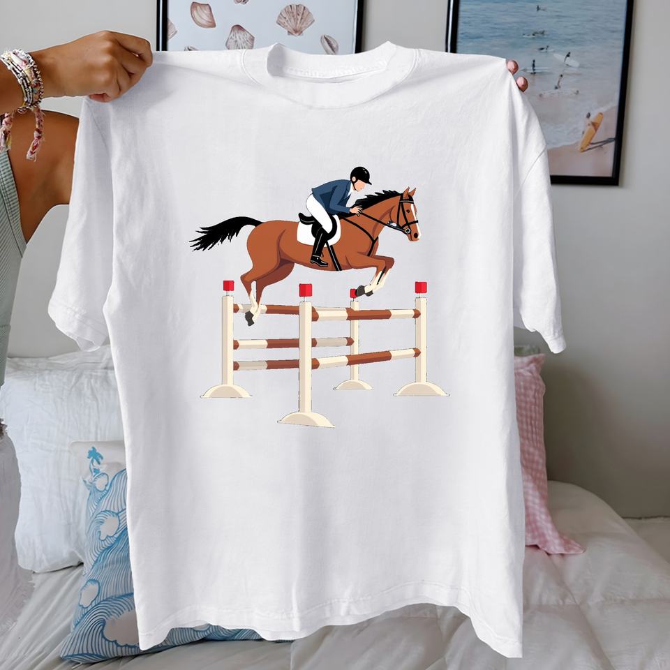 Camiseta de Mujer 100% Algodón con Estampado Casual de Caballo y Jinete, Estilo Ecuestre, Ajuste Cómodo