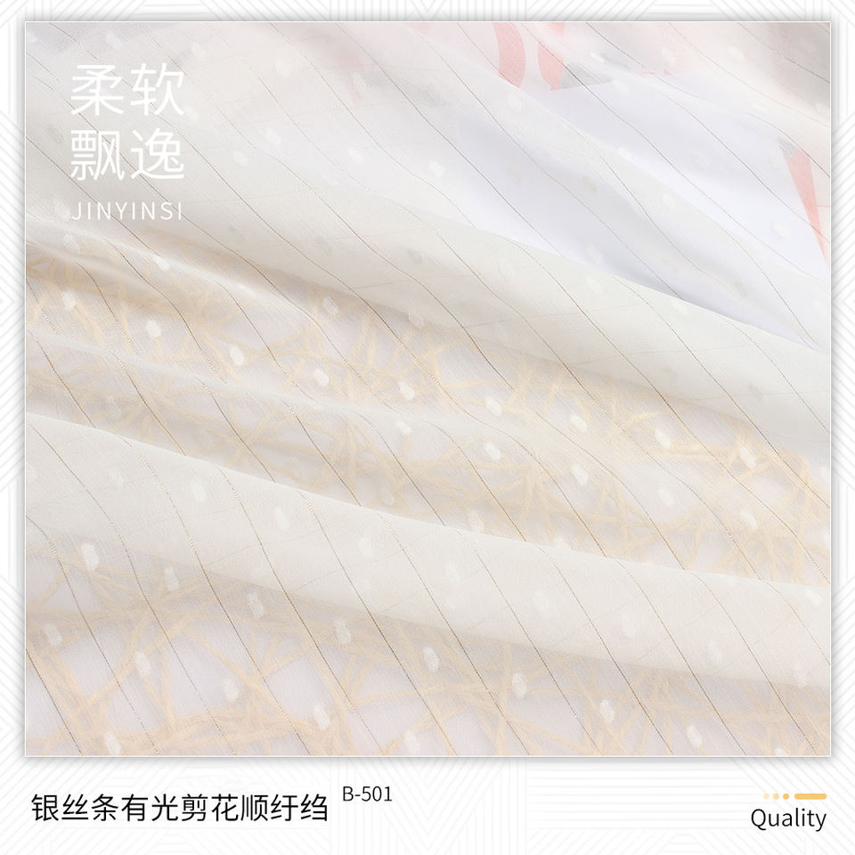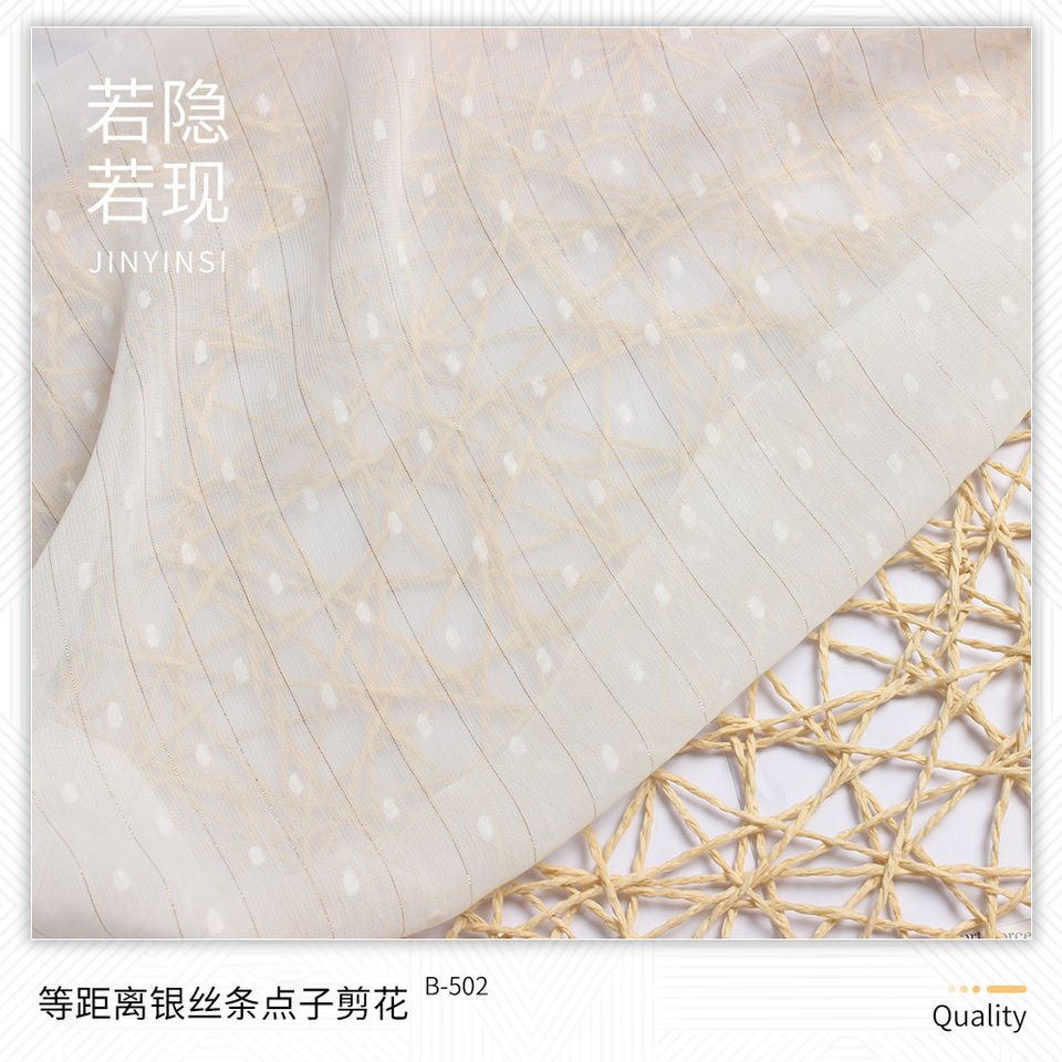 Tiras de plata equidistantes con puntos rectangulares ligeros, flores cortadas, tira de lurex dorada y plateada barata, punto de satén recortado
